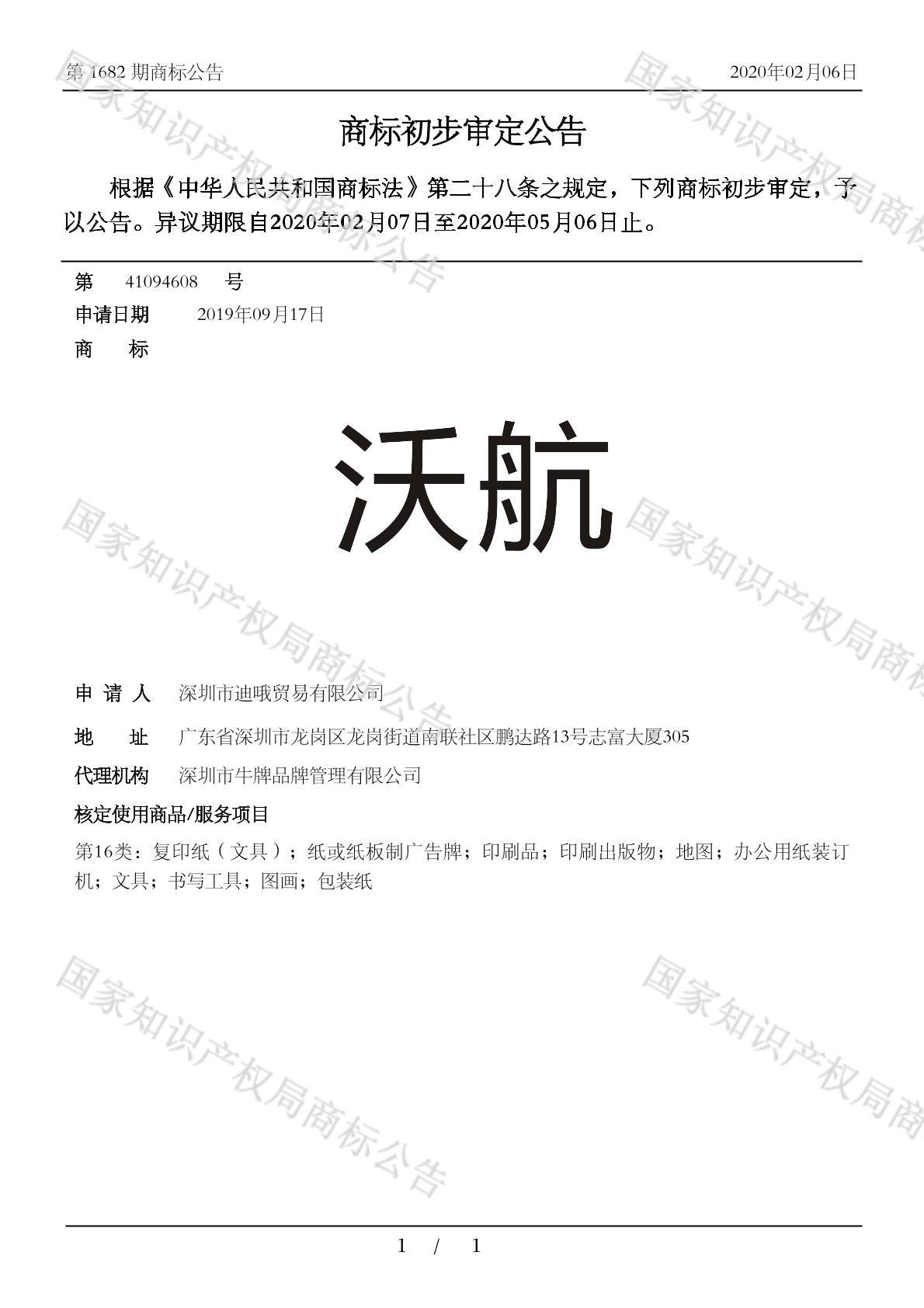 有效期限:2030-05-06 组合类型:中文注册号:41094608