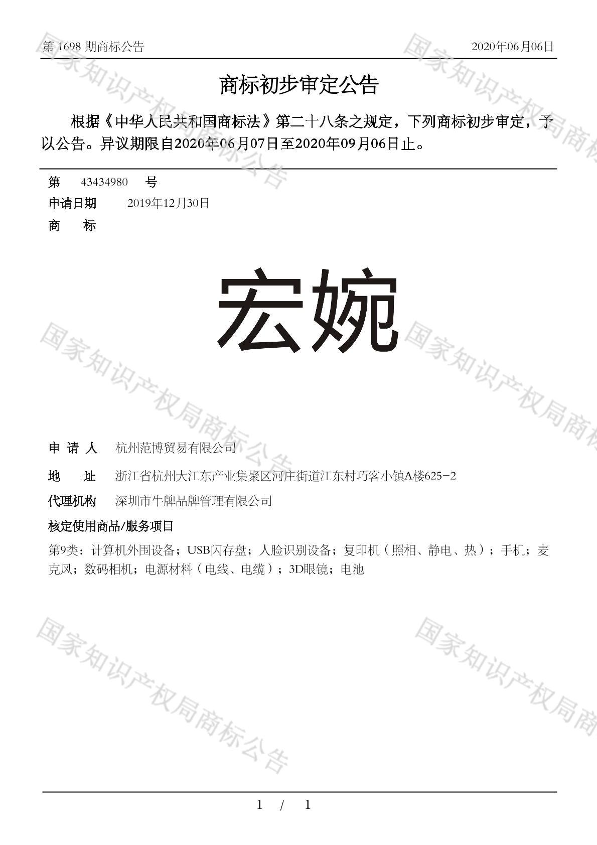 有效期限:2030-09-06 组合类型:中文注册号:43434980