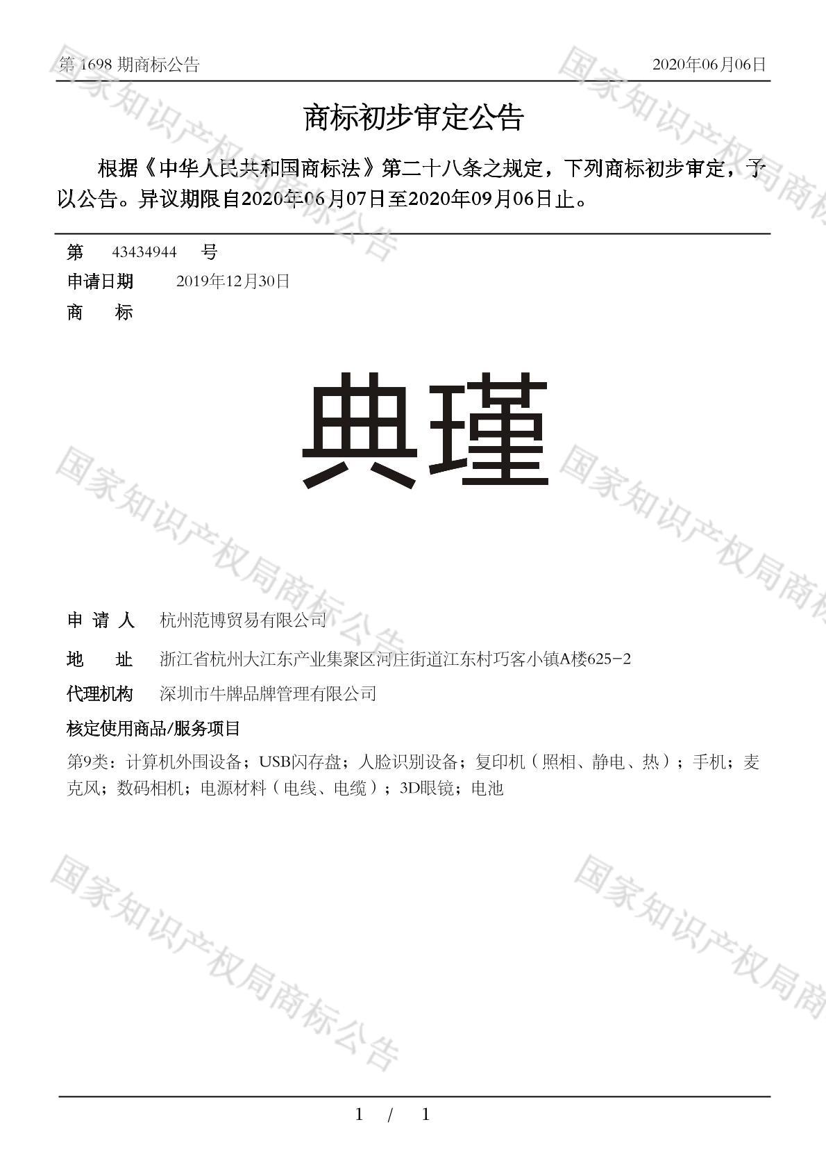 有效期限:2030-09-06 组合类型:中文注册号:43434944