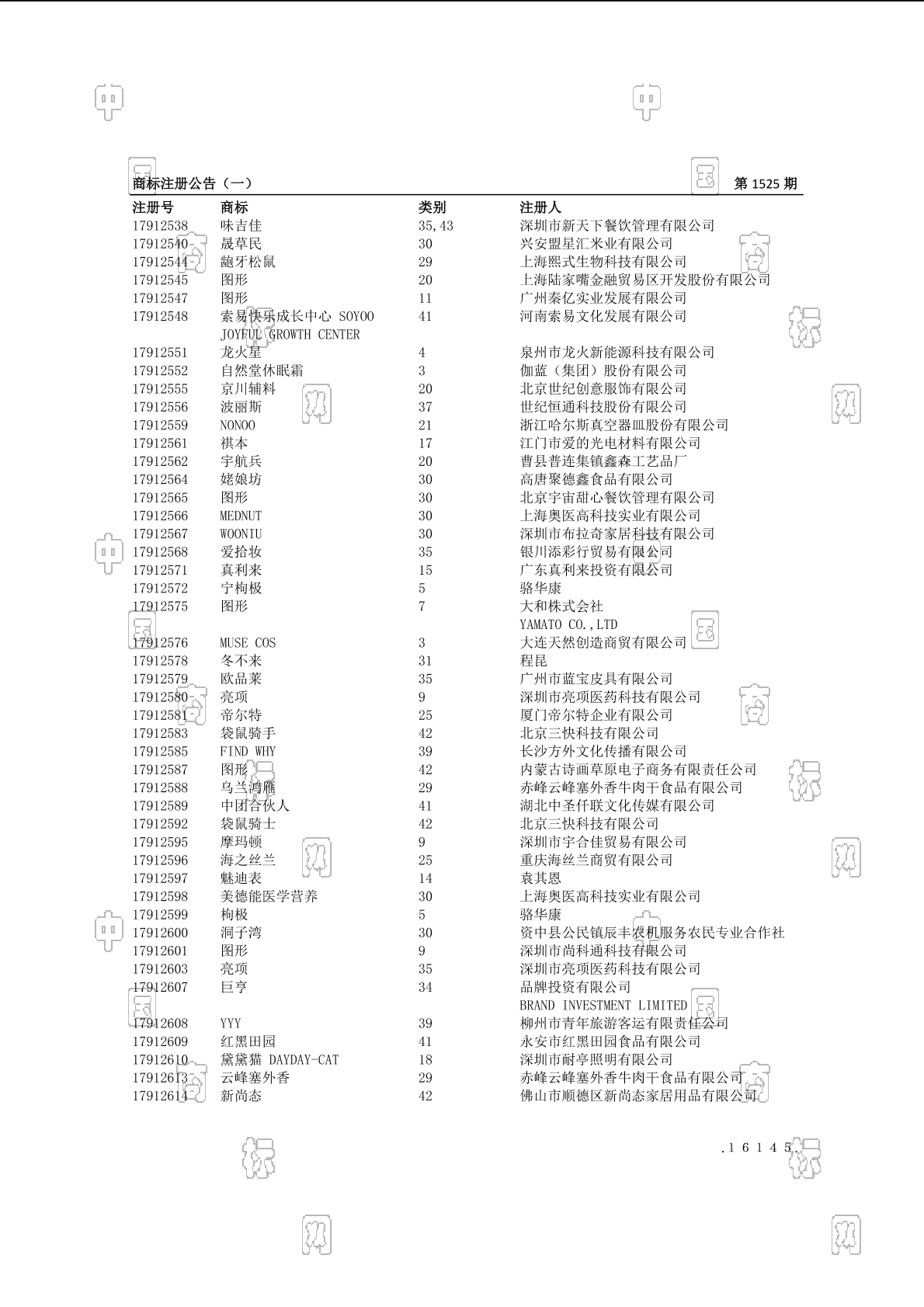 注册公告期号:1525