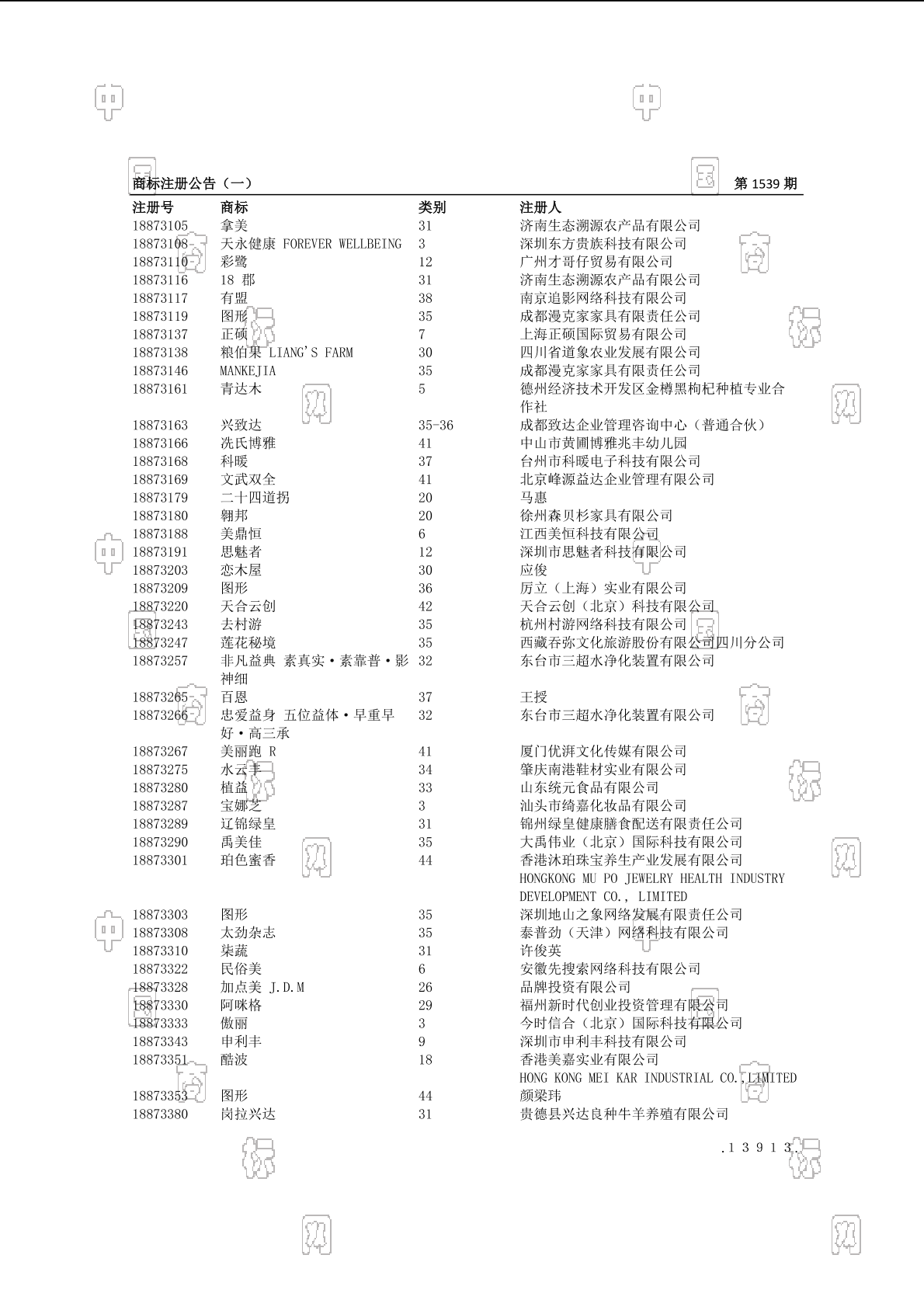 注册公告期号:1539
