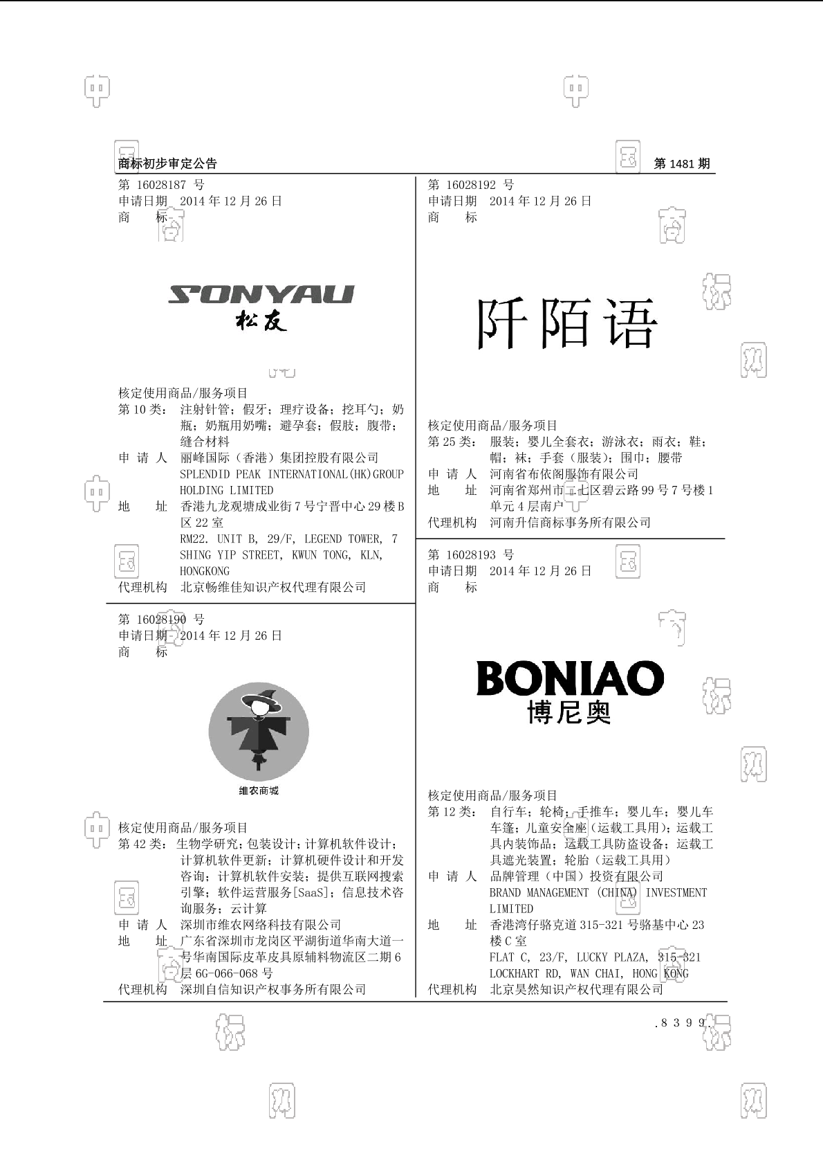 初审公告期号:1481
