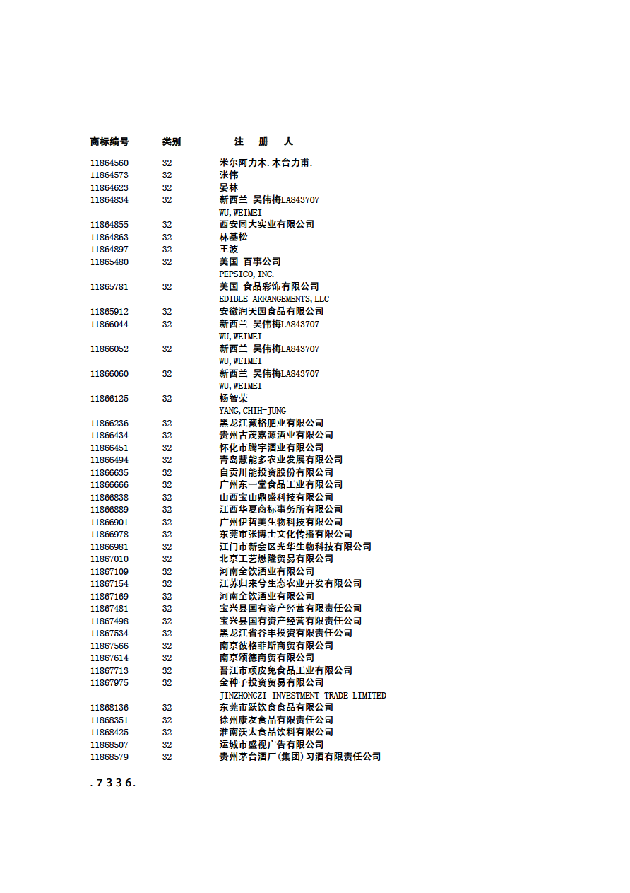 商标分类:第32类