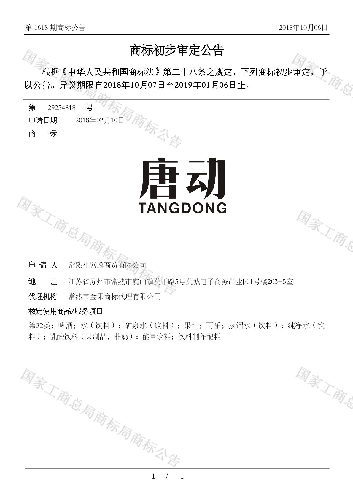 有效期限:2029-01-06 组合类型:中文注册号:29254818