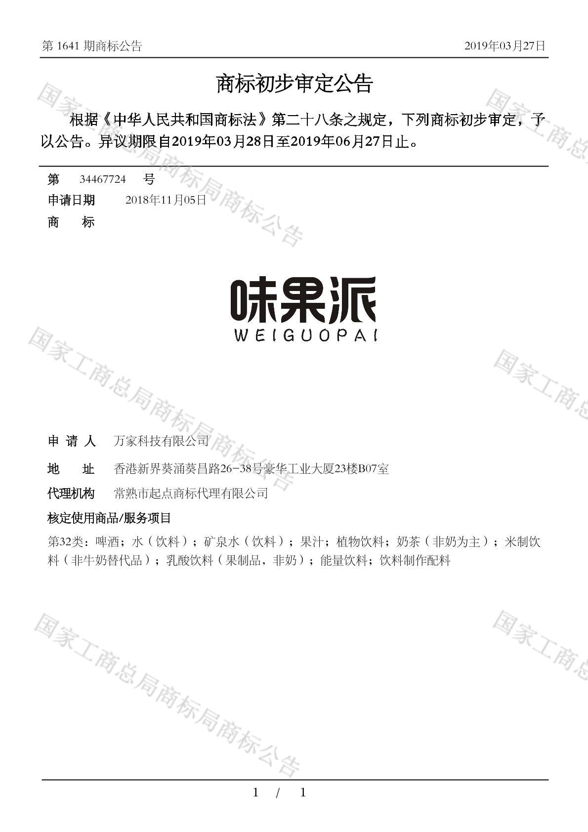 您当前位置:首页商标转让32类商标味果派