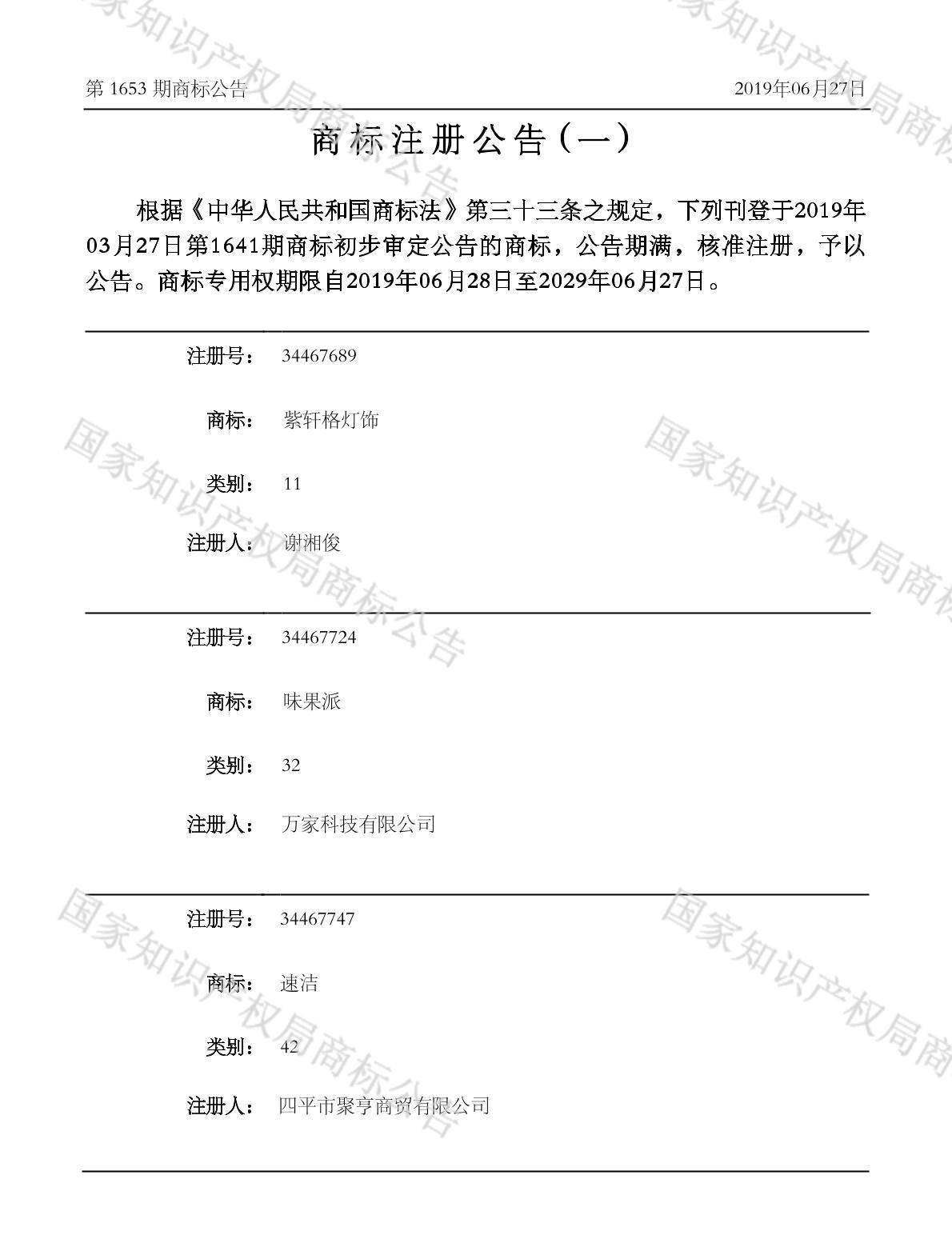 有效期限:2029-06-27 组合类型:中文注册号:34467724