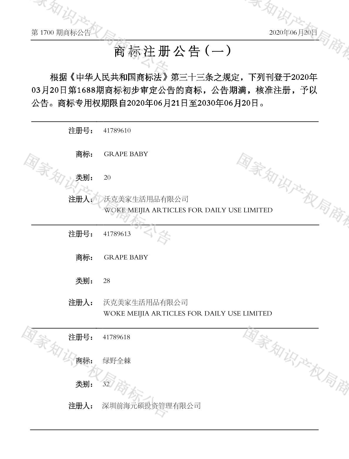 您当前位置:首页商标转让28类商标GRAPE BABY