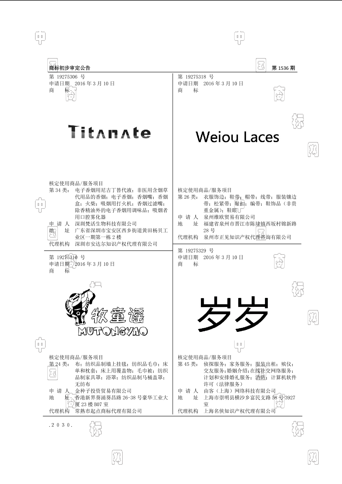 初审公告期号:1536