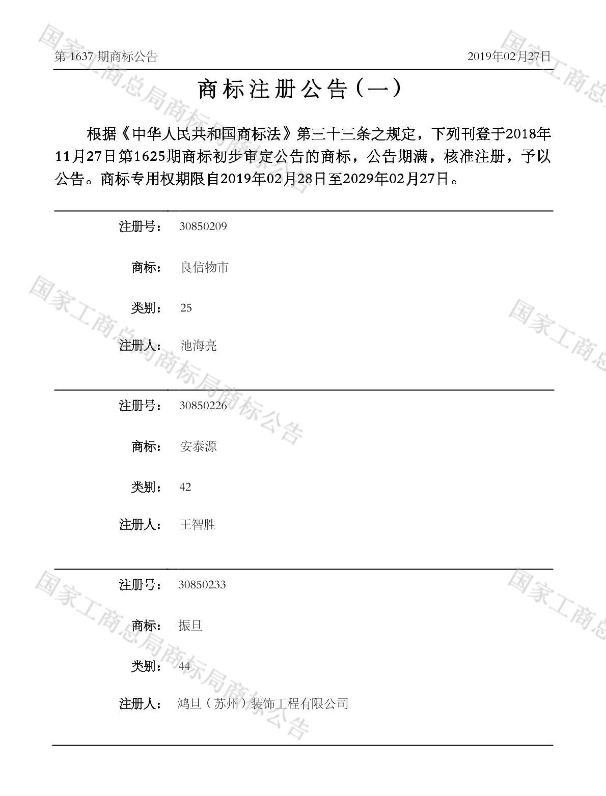 注册公告期号:1637