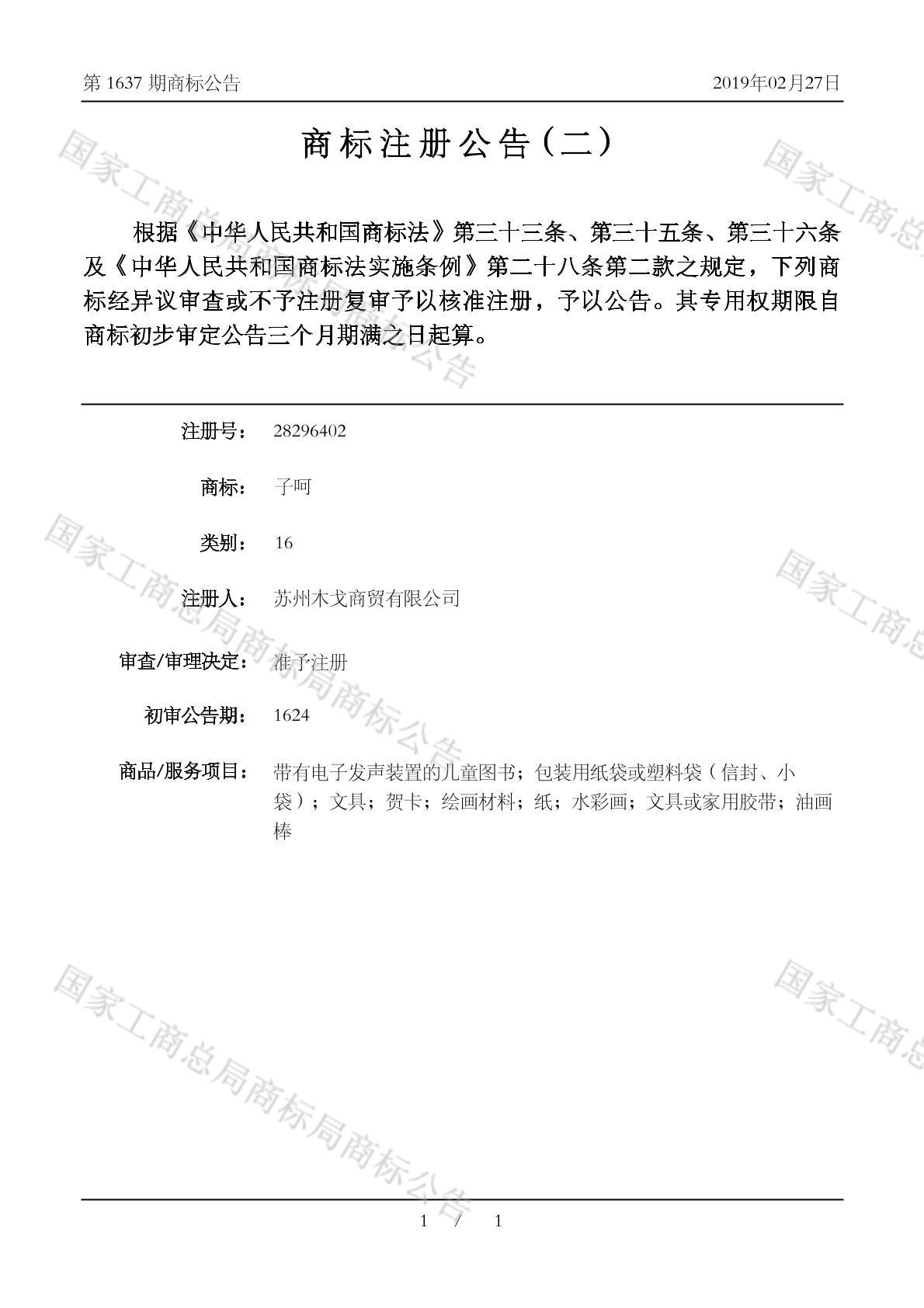 有效期限:2029-02-20 组合类型:中文注册号:28296402