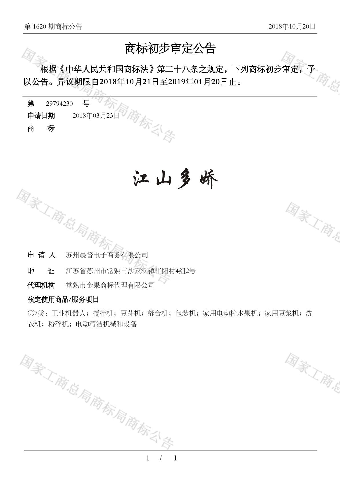 初审公告日期:2018-10-20