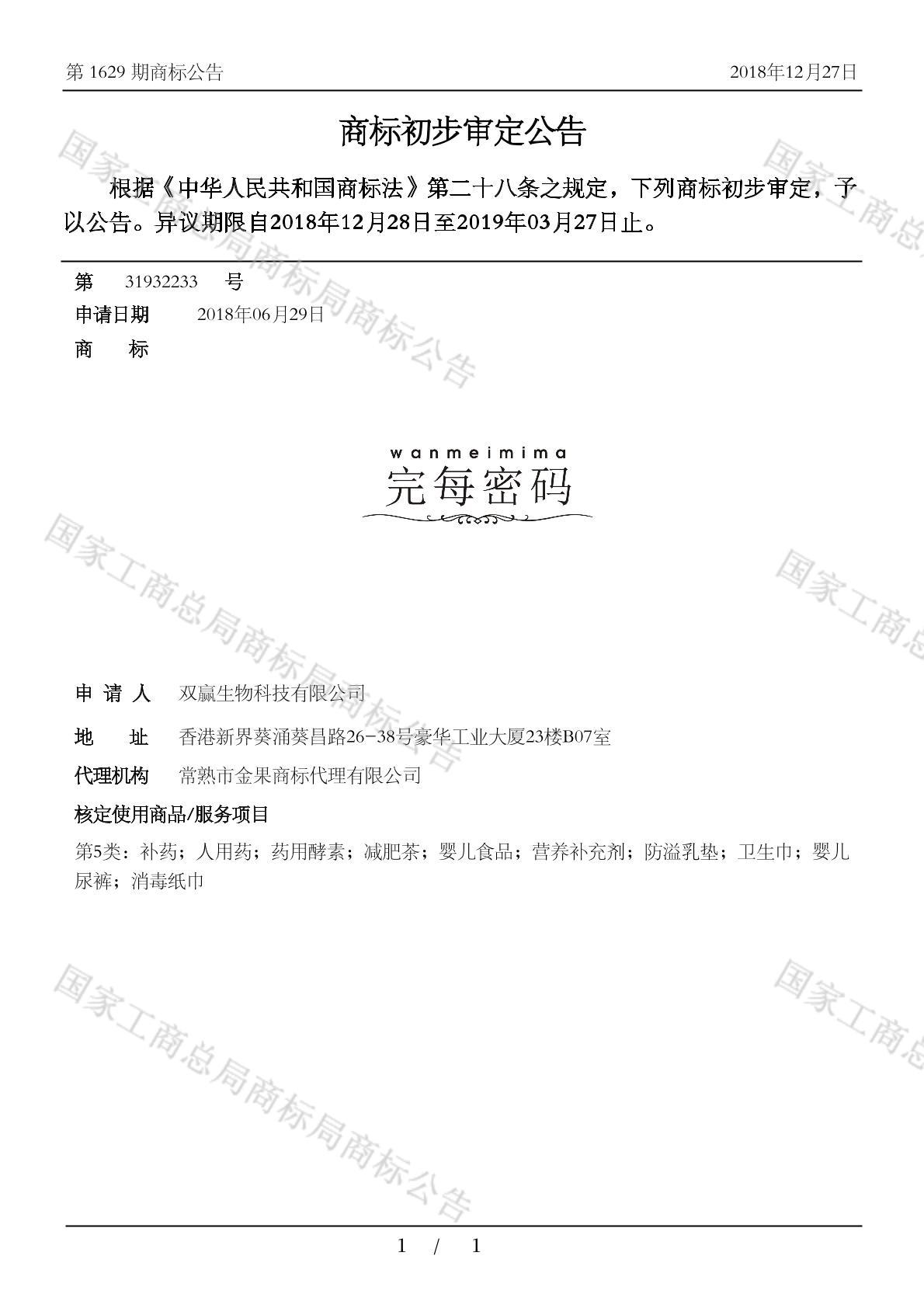 初审公告日期:2018-12-27