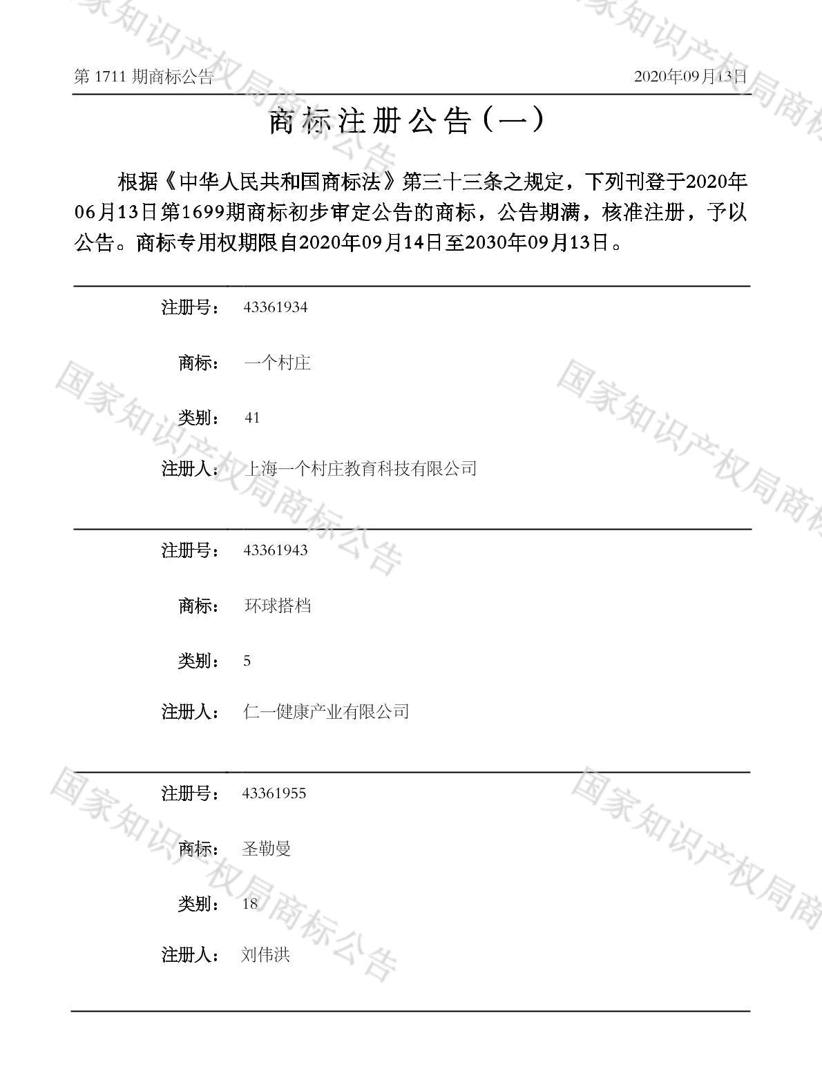 有效期限:2030-09-13 组合类型:中文注册号:43361943