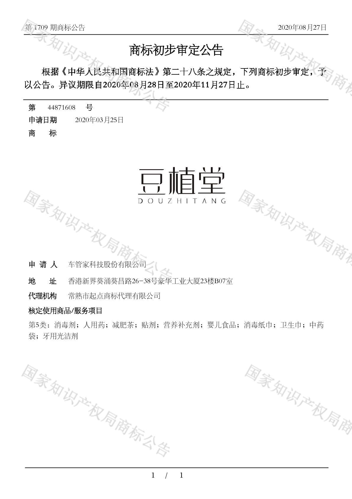 您当前位置:首页商标转让5类商标豆植堂