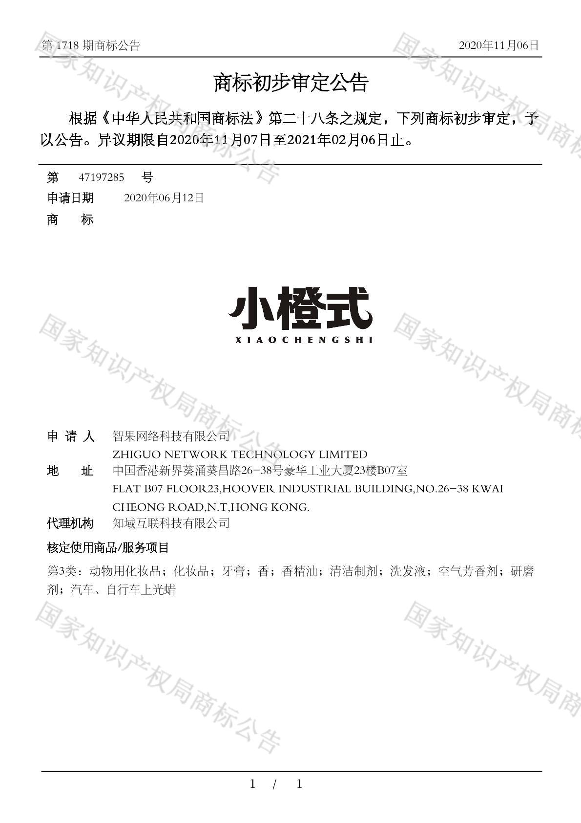 有效期限:2031-02-06 组合类型:中文注册号:47197285