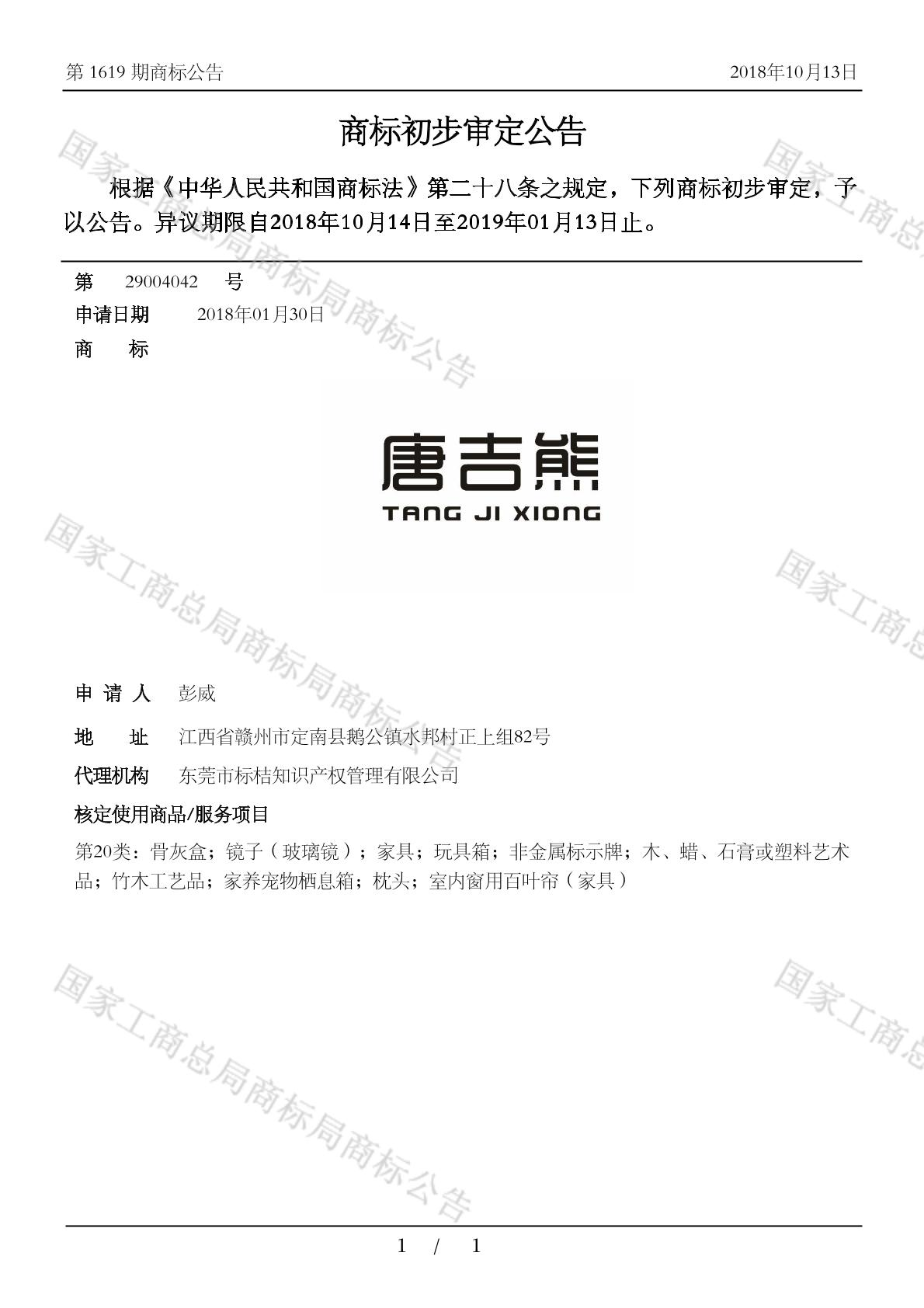 初审公告期号:1619