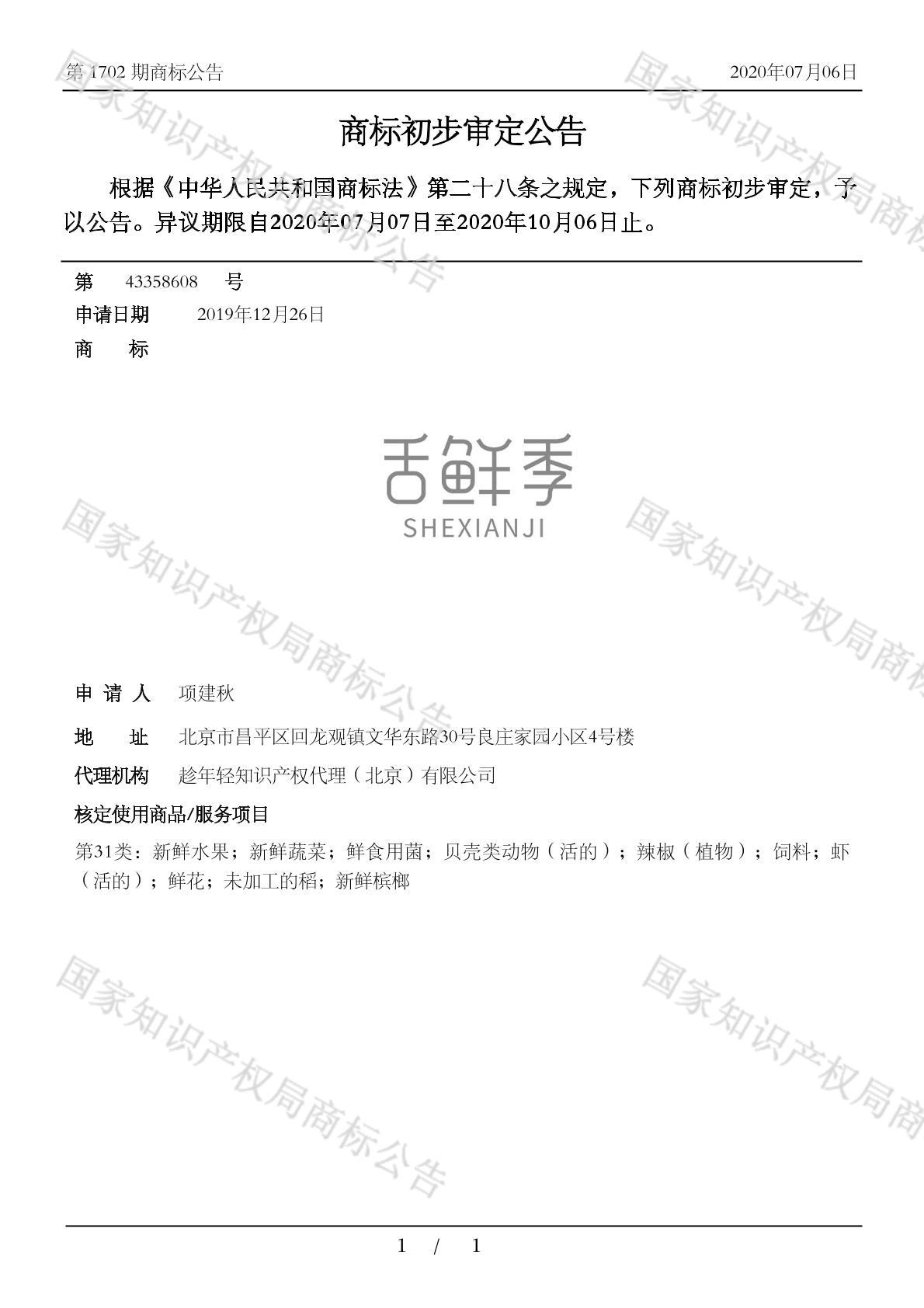 有效期限:2030-10-06 组合类型:中文注册号:43358608