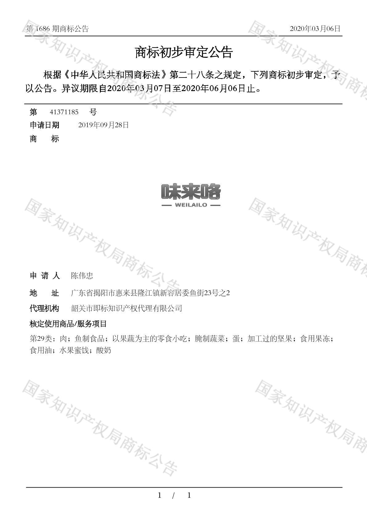 初审公告期号:1686
