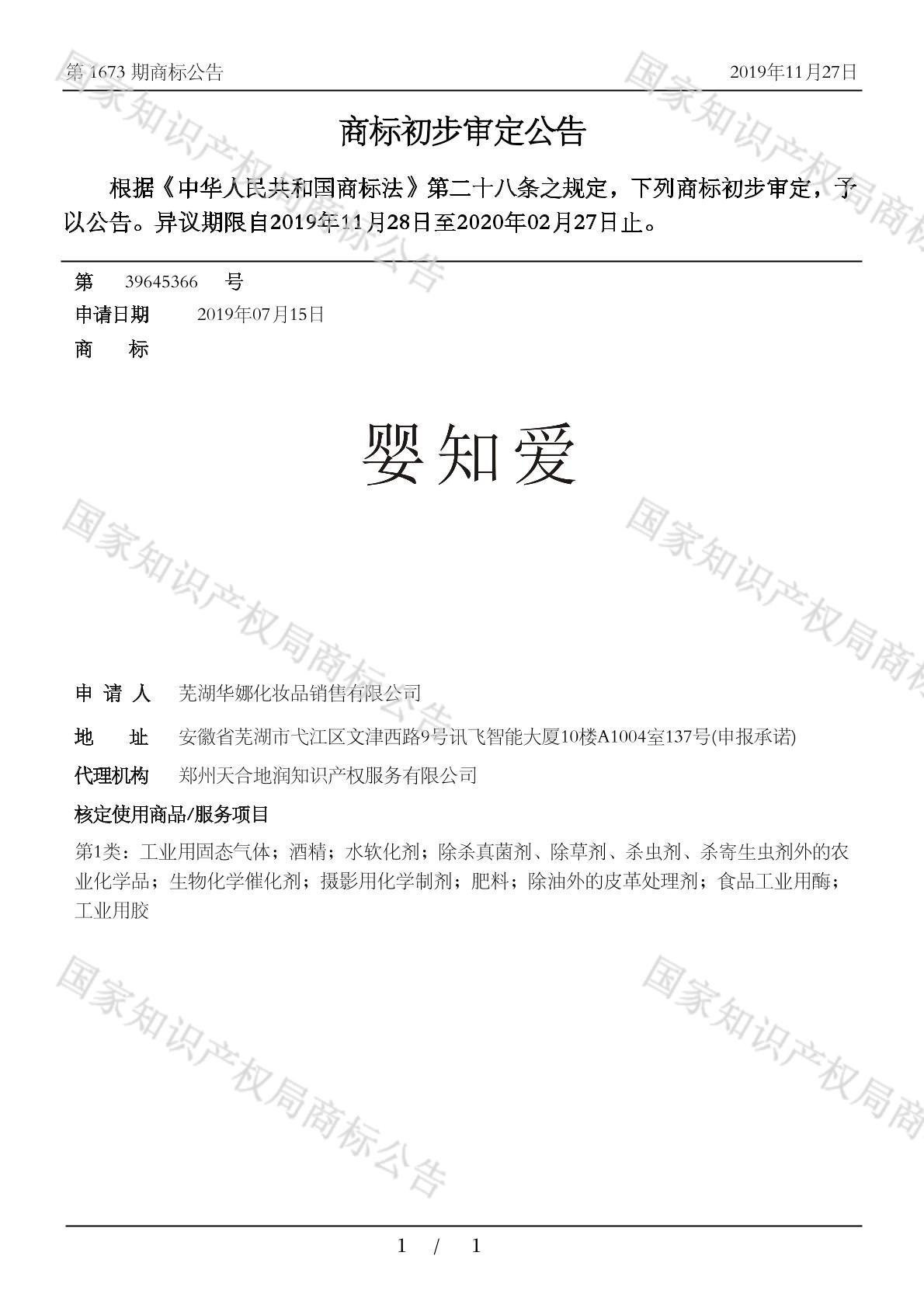 商标分类:第1类