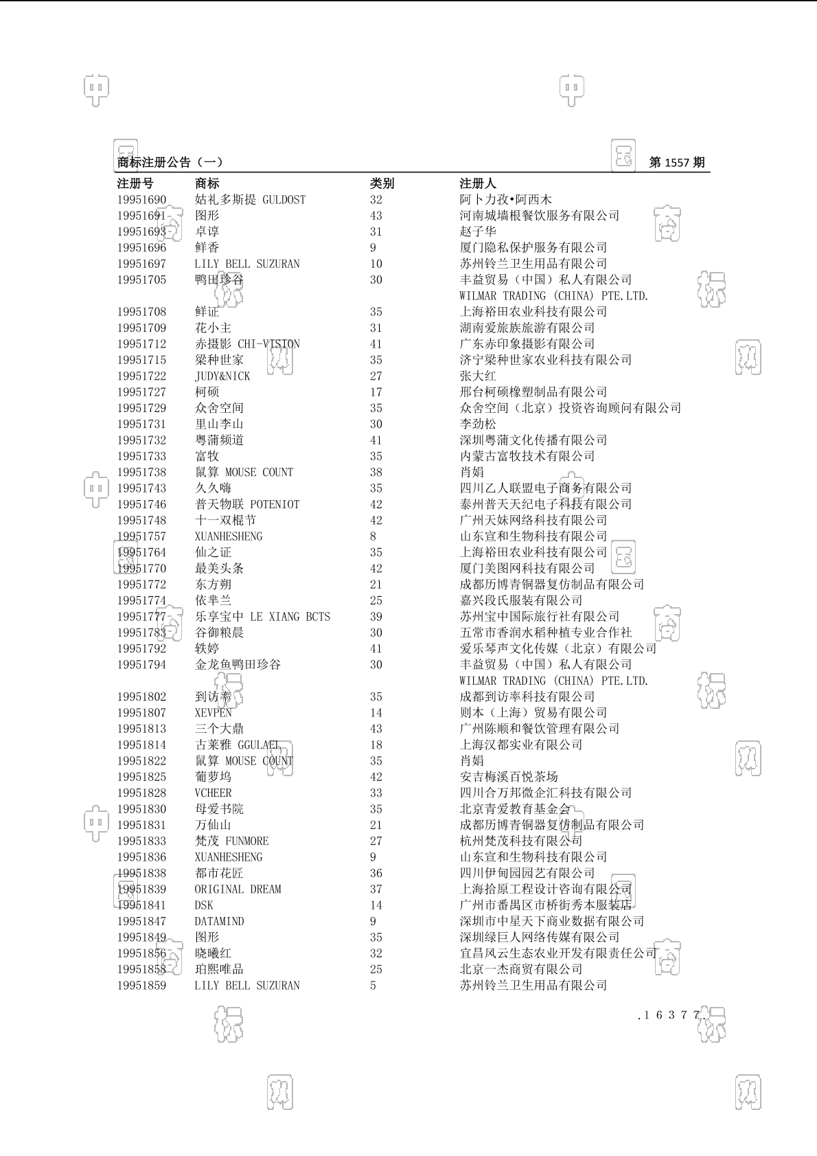注册公告期号:1557