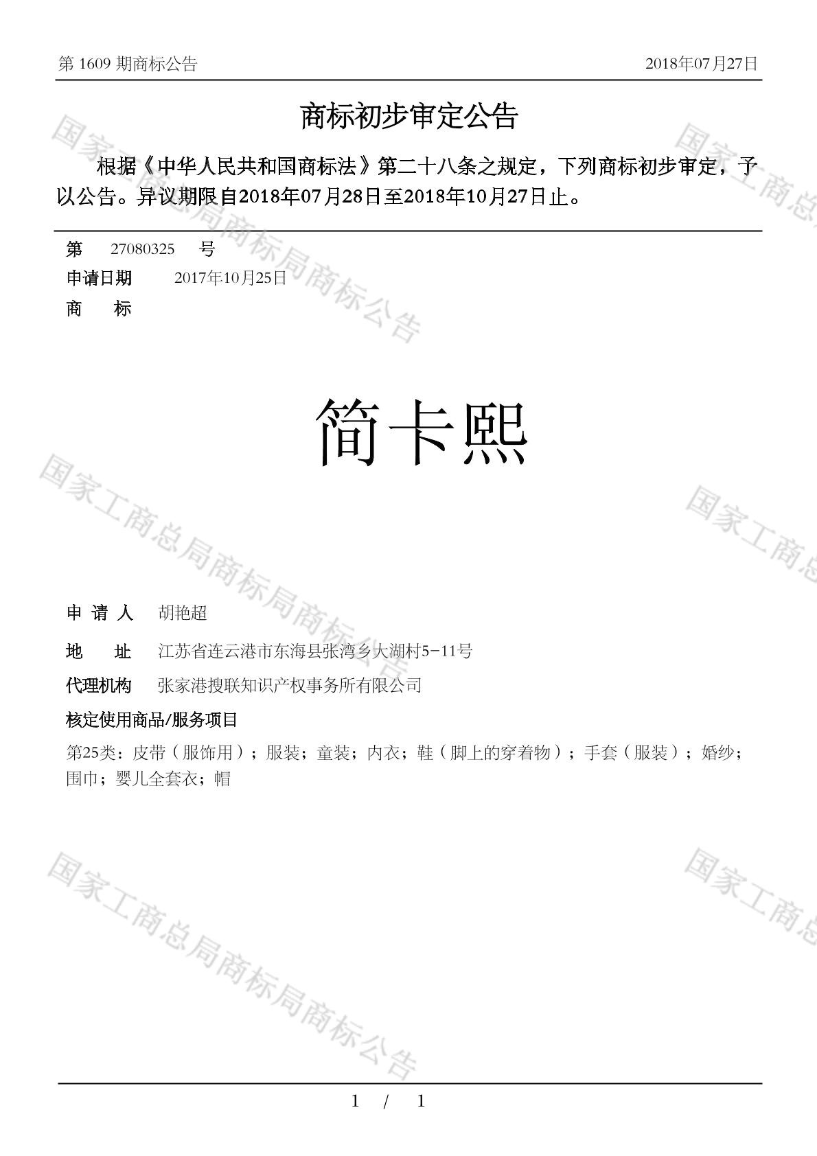 您当前位置:首页商标转让25类商标简卡熙