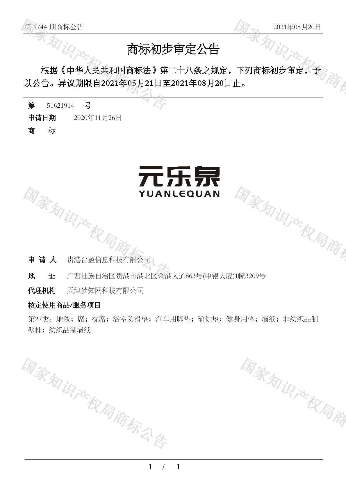 您当前位置:首页商标转让27类商标元乐泉