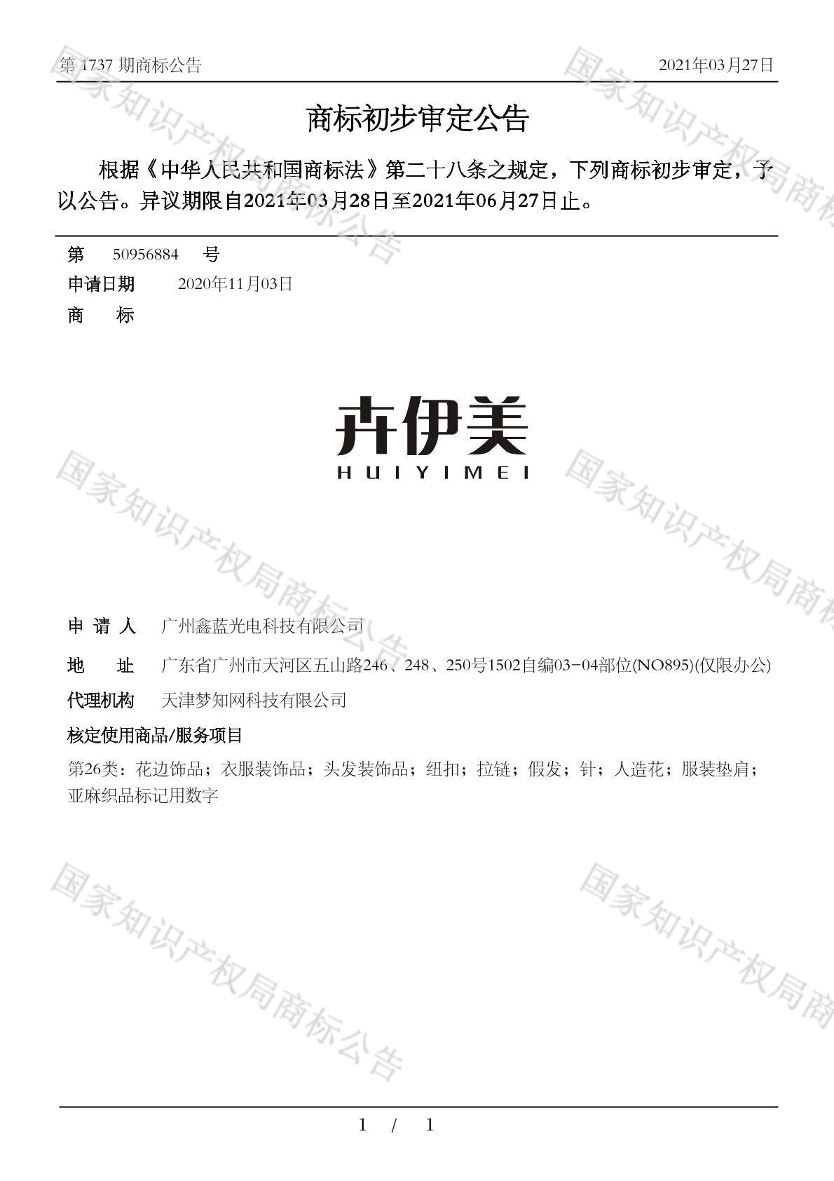 有效期限:2031-06-27 组合类型:中文注册号:50956884