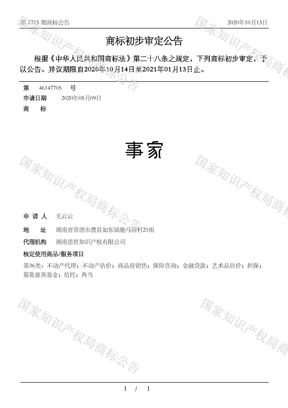 初审公告期号:1715