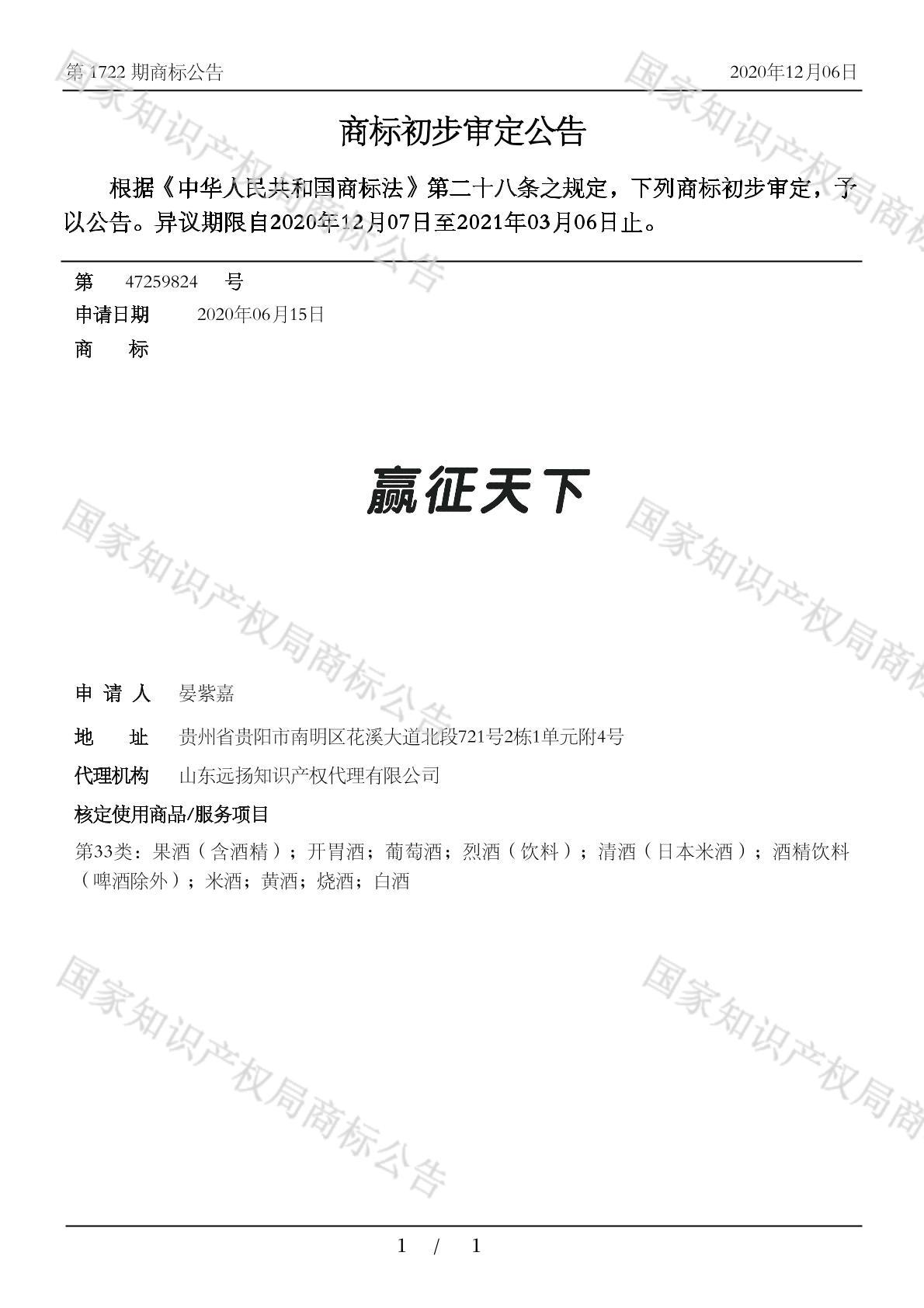 有效期限:2031-03-06 组合类型:中文注册号:47259824