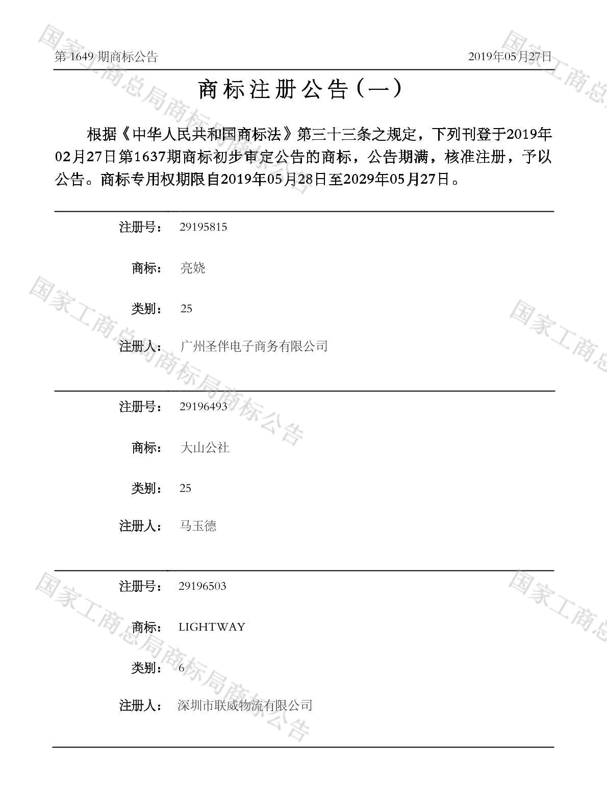 有效期限:2029-05-27 组合类型:中文注册号:29195815