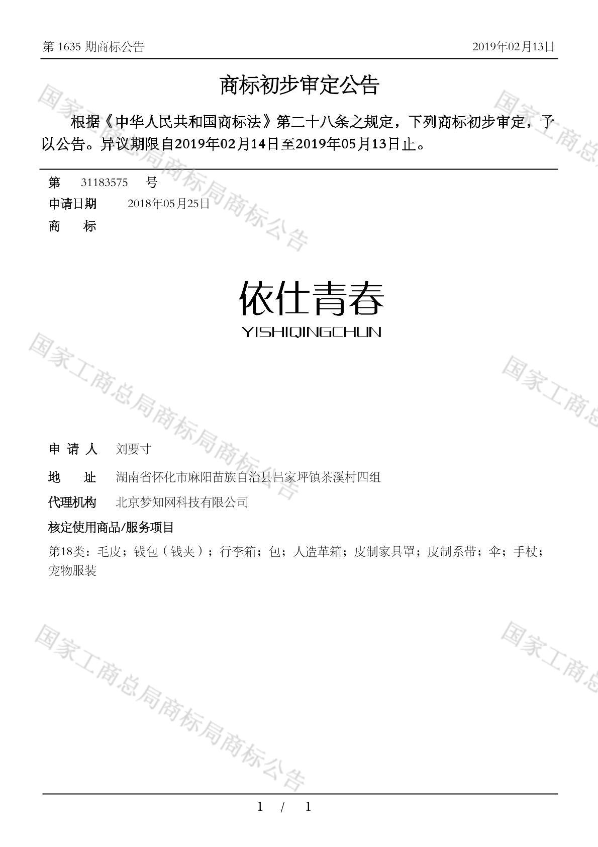 有效期限:2029-05-13 组合类型:中文注册号:31183575