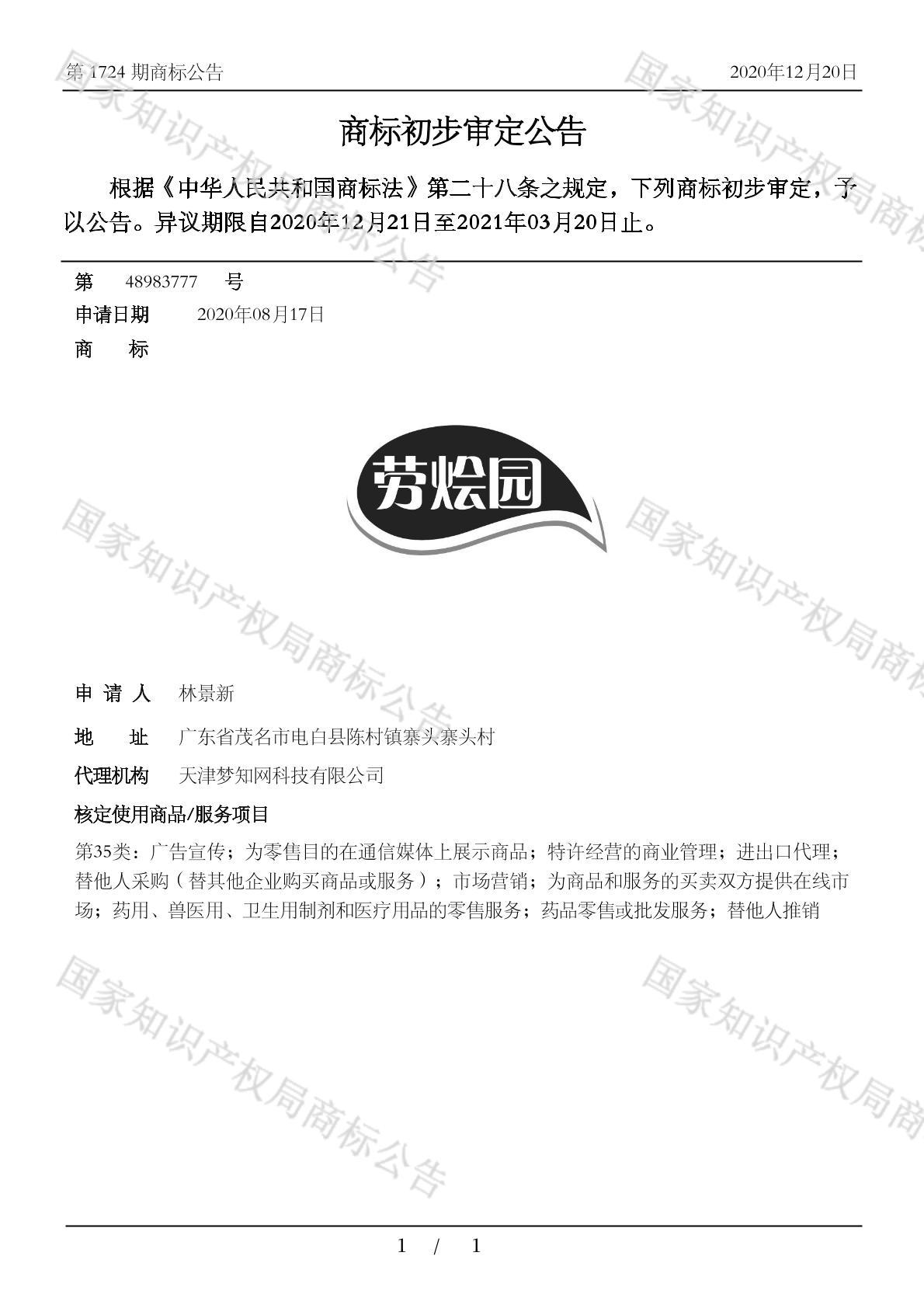 有效期限:2031-03-20 组合类型:中文注册号:48983777