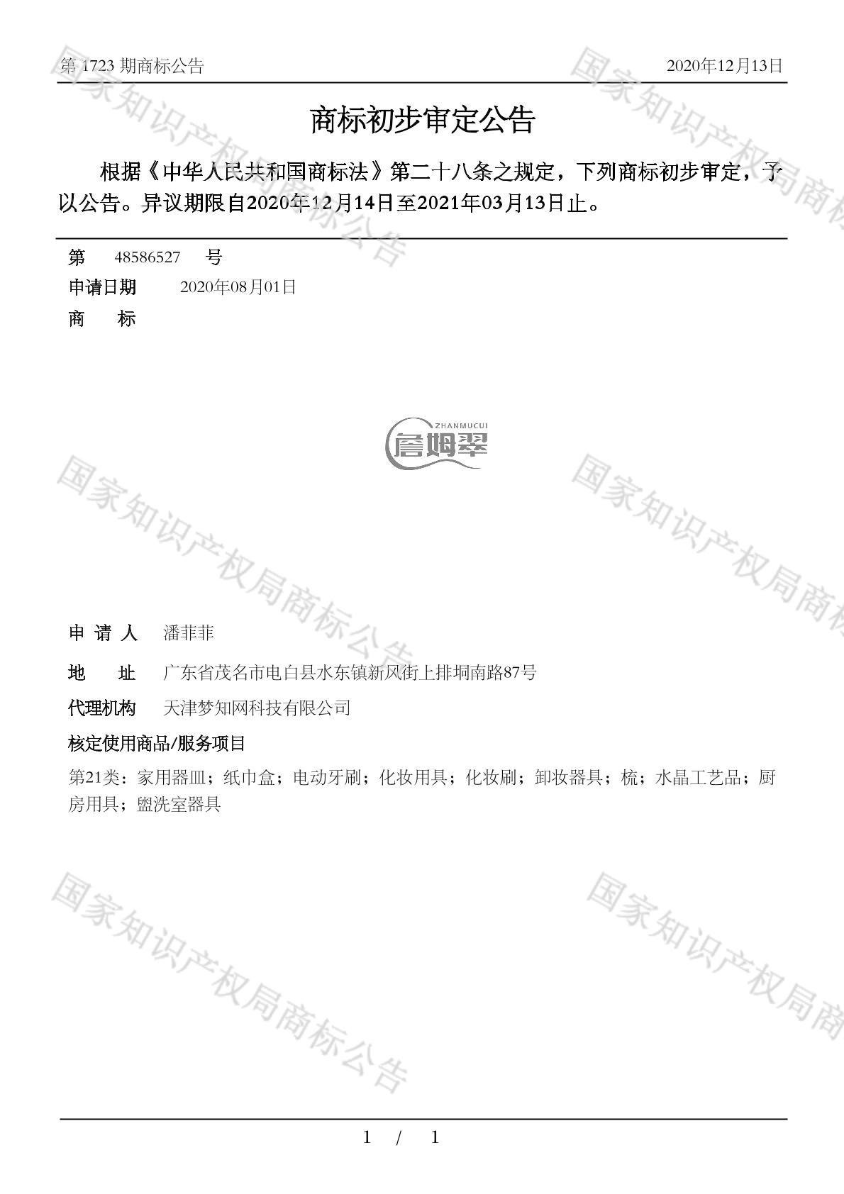 有效期限:2031-03-13 组合类型:中文注册号:48586527