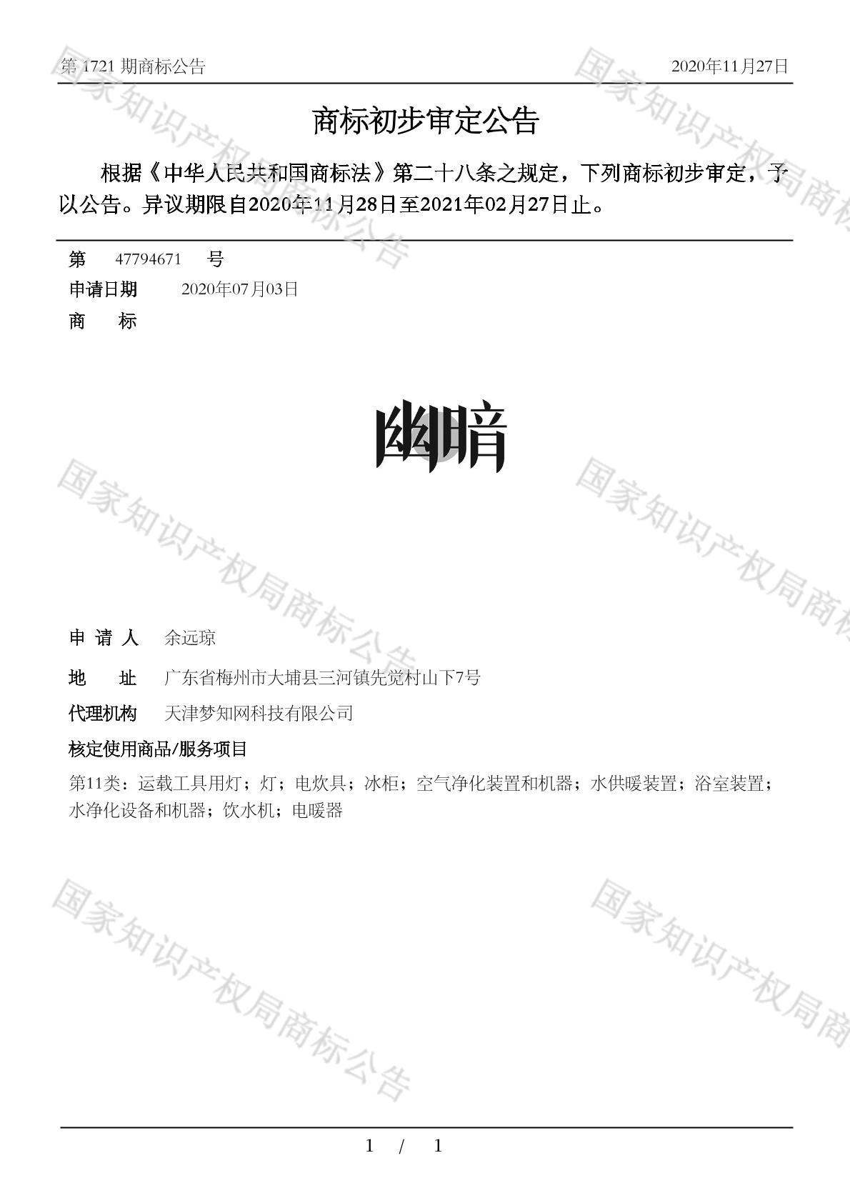 初审公告日期:2020-11-27