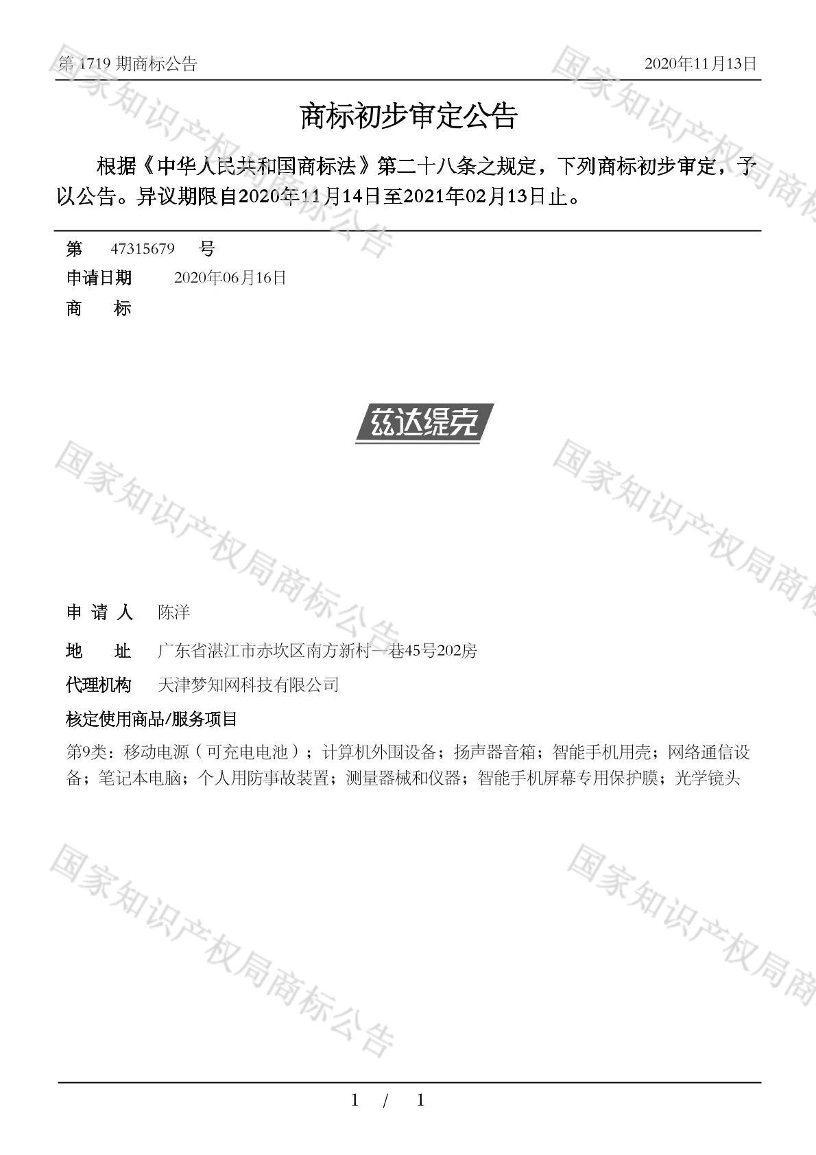 初审公告日期:2020-11-13