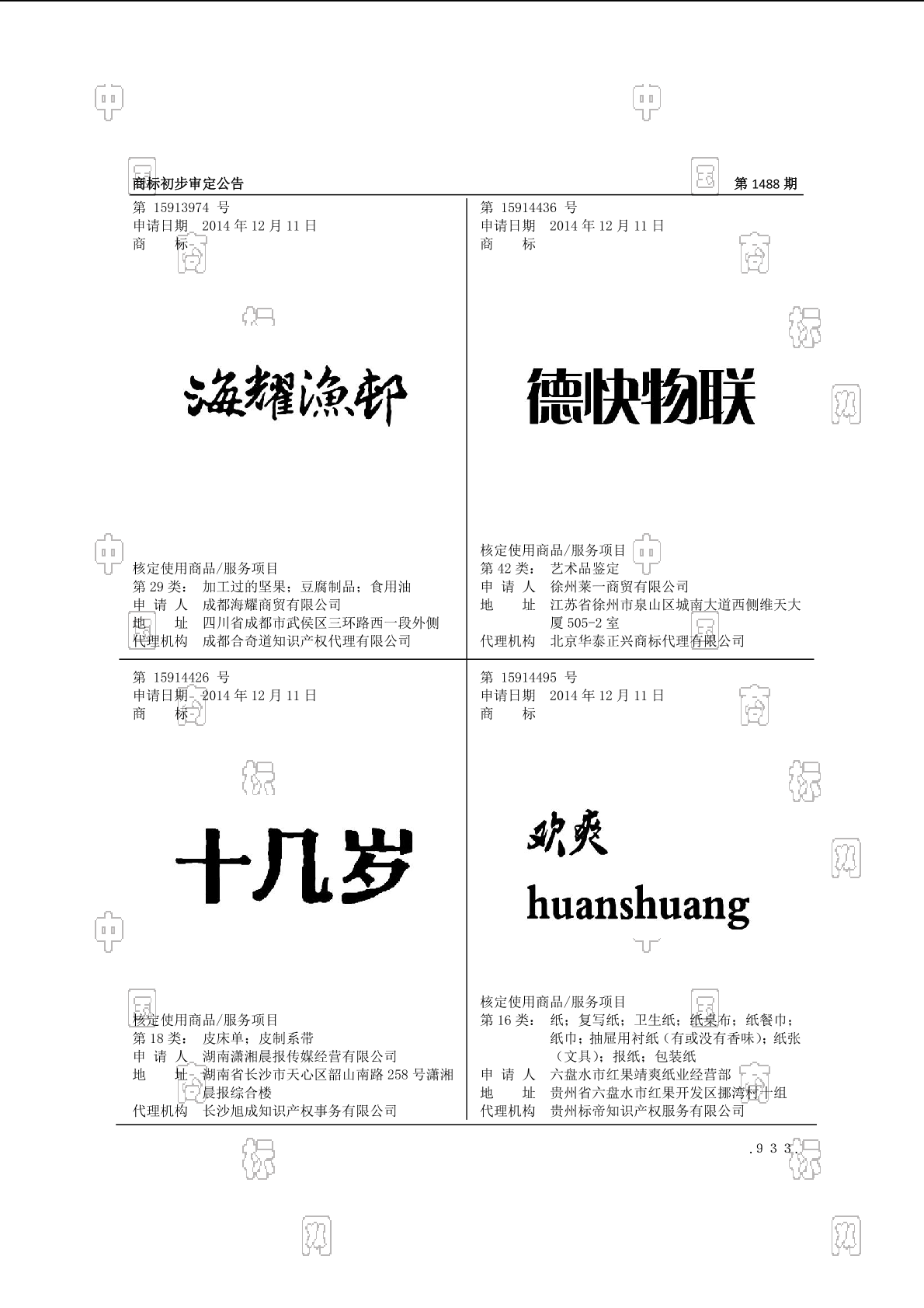 初审公告期号:1488