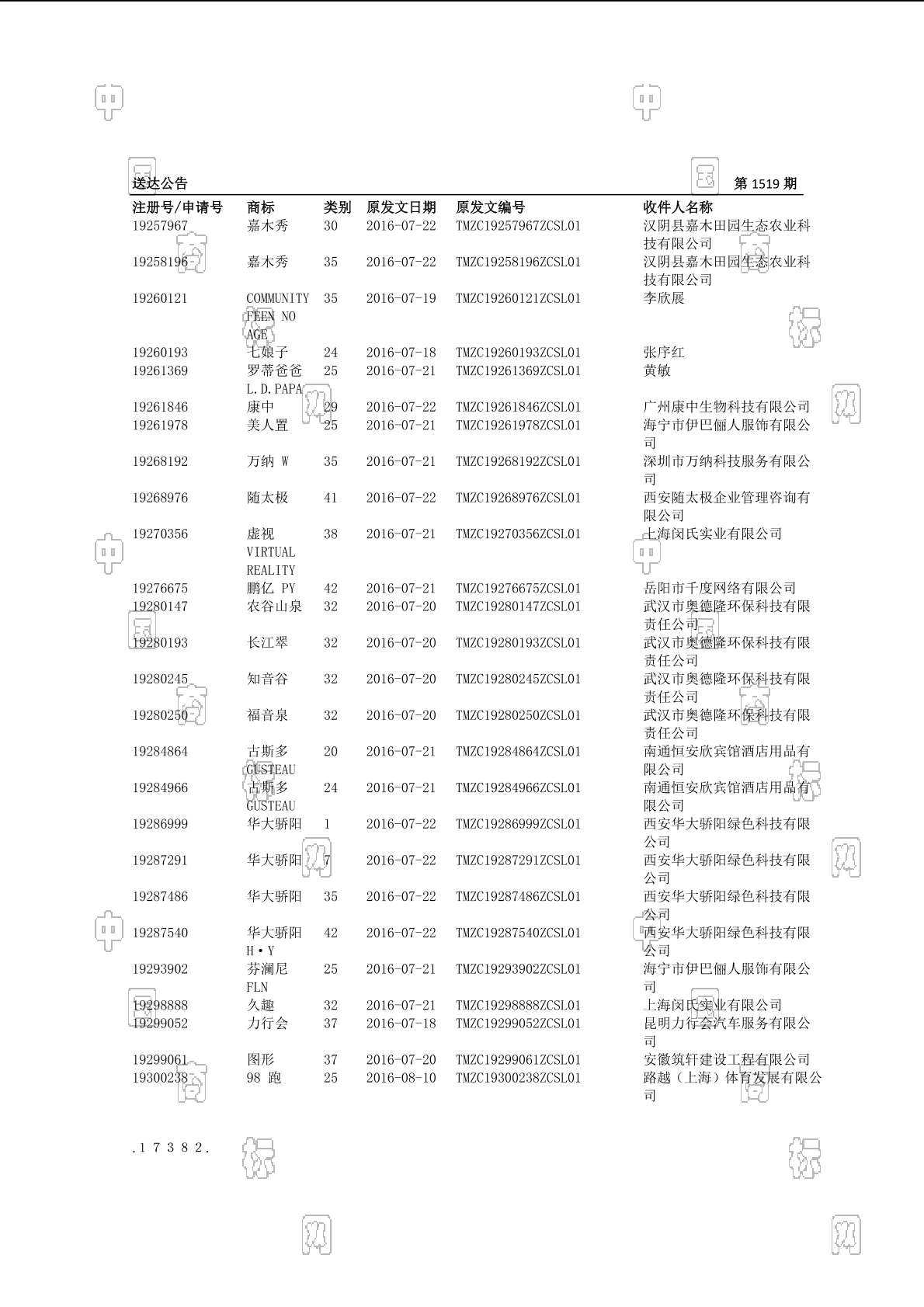 初审公告期号:1519