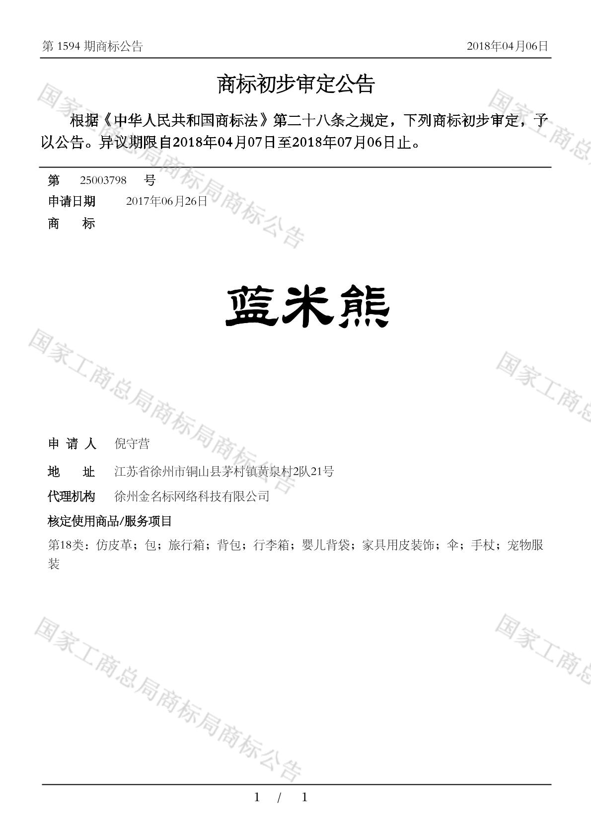 您当前位置:首页商标转让18类商标蓝米熊