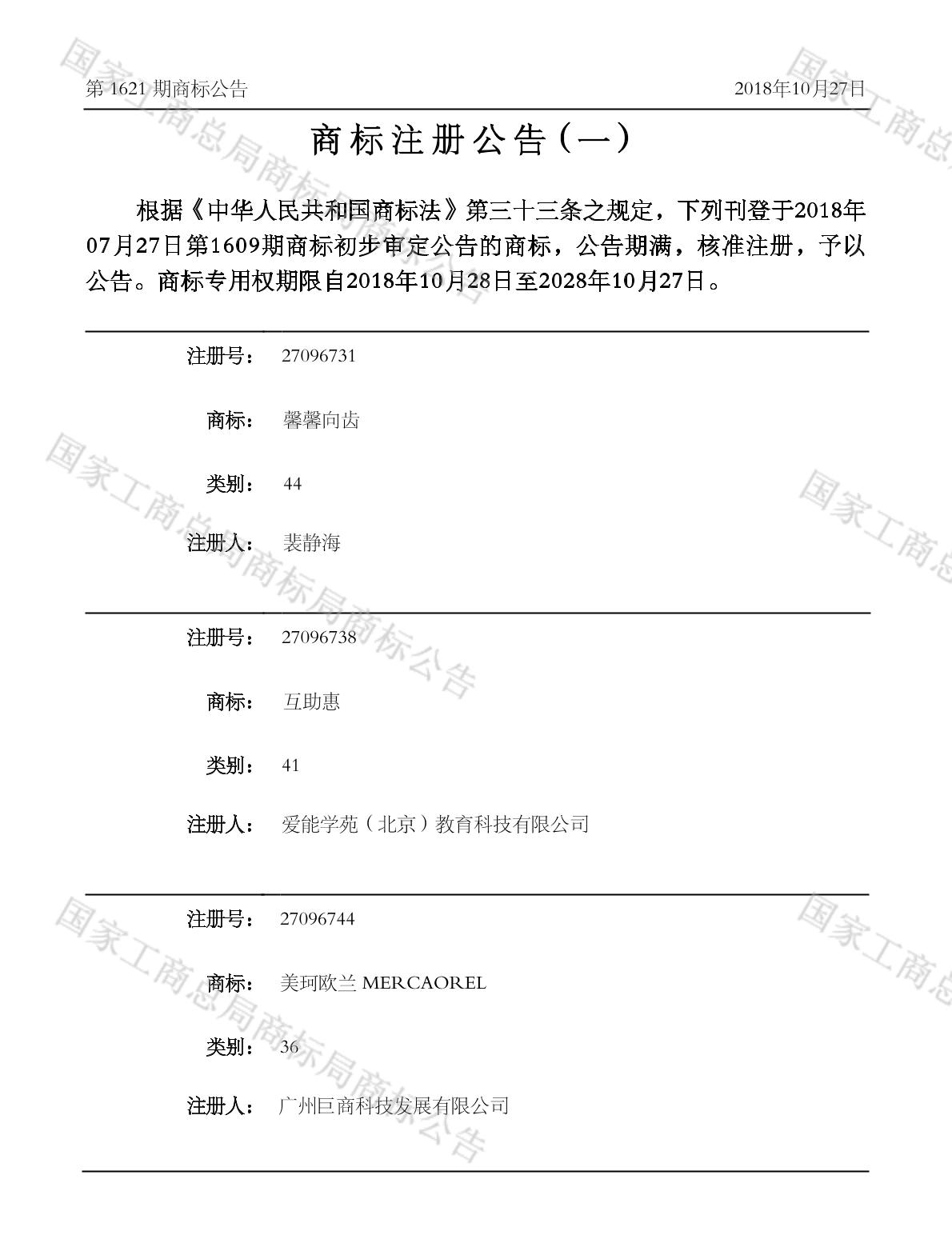 有效期限:2028-10-27 组合类型:中文注册号:27096744