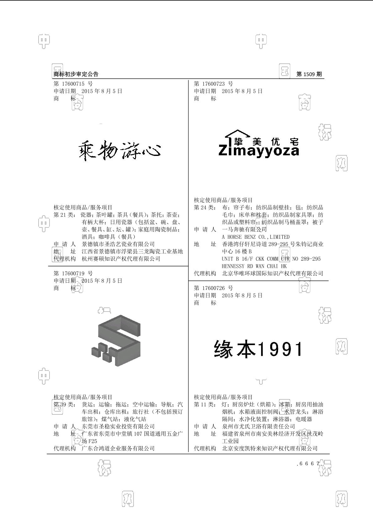 初审公告期号:1509