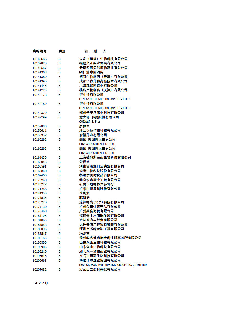 商标分类:第5类