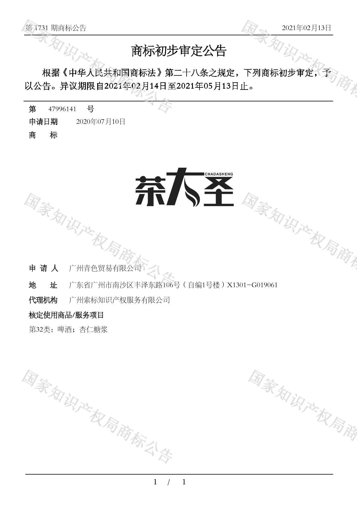 有效期限:2031-05-13 组合类型:中文注册号:47996141