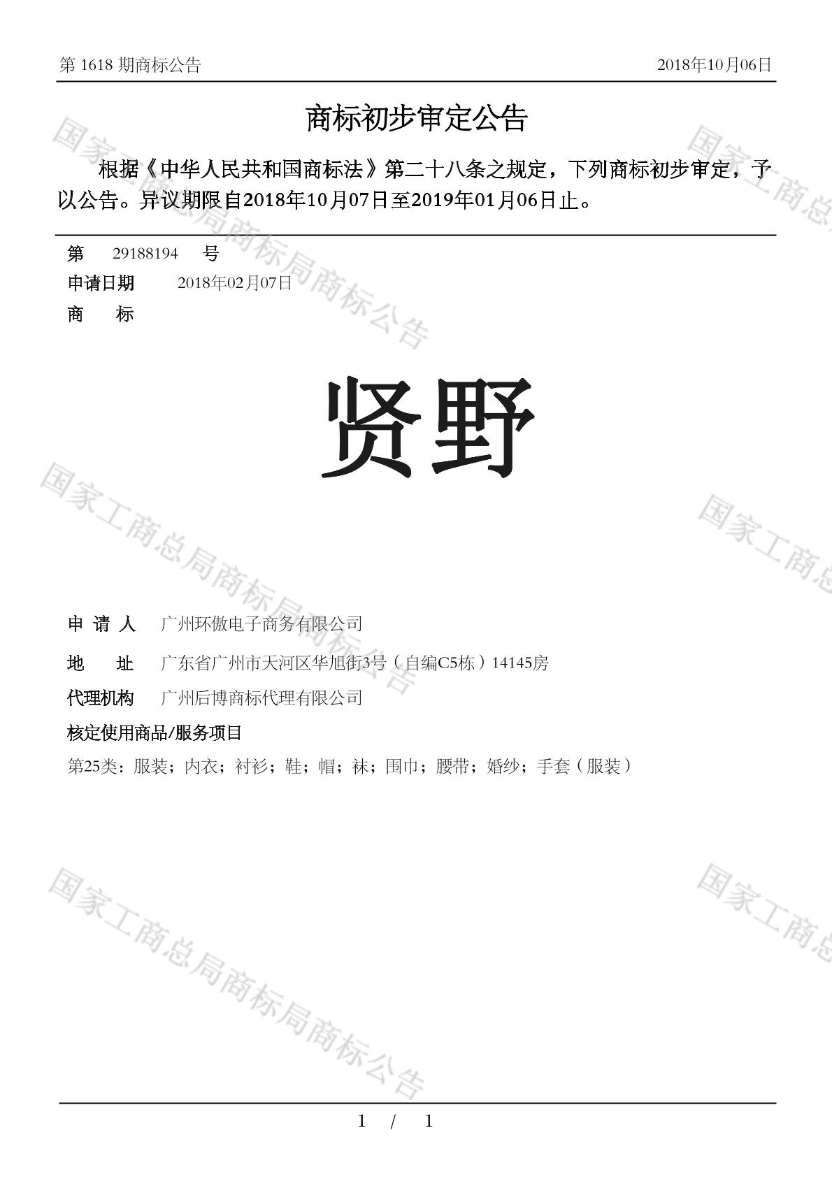 您当前位置:首页商标转让25类商标贤野
