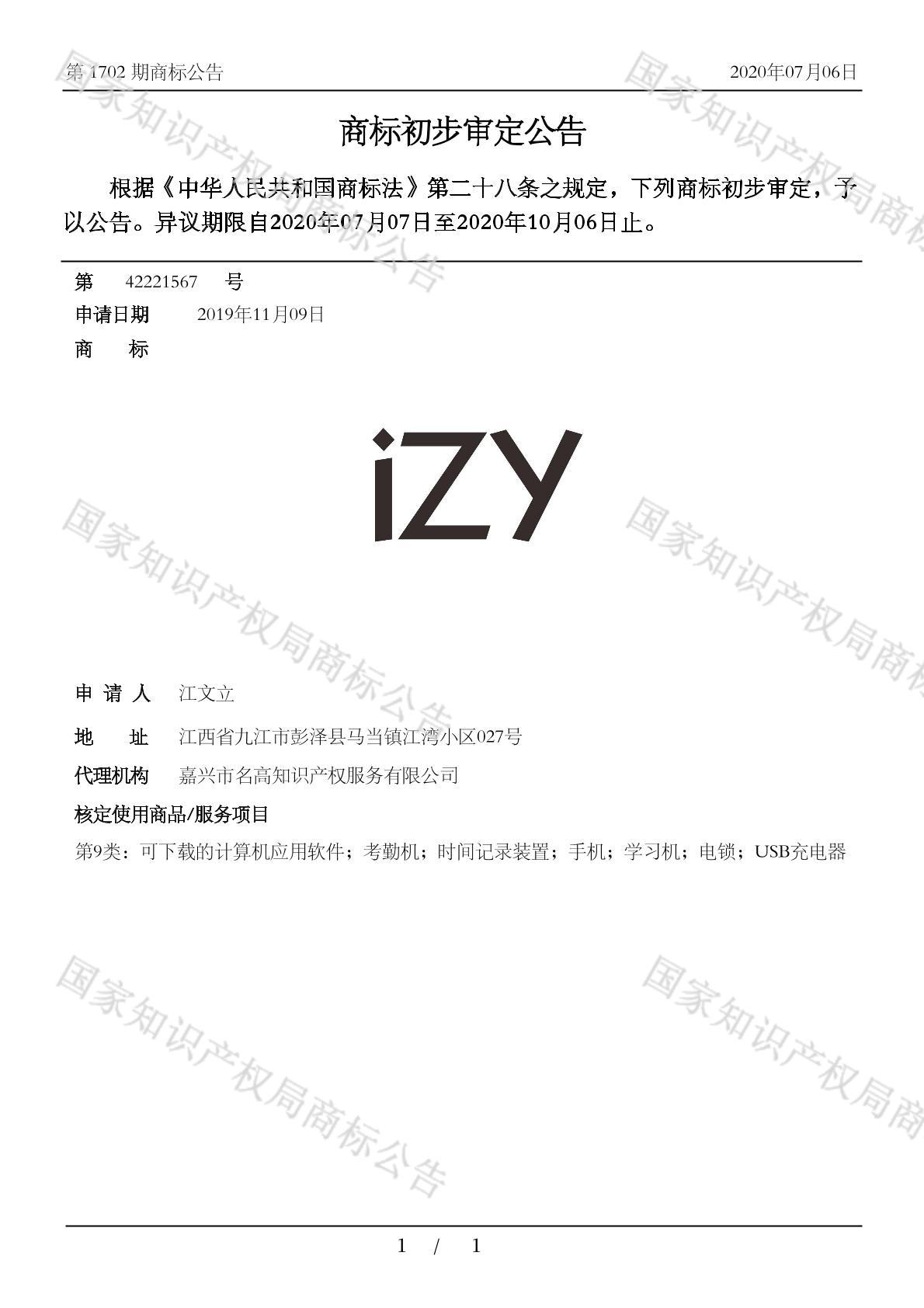 有效期限:2030-10-06 组合类型:中文注册号:42221567
