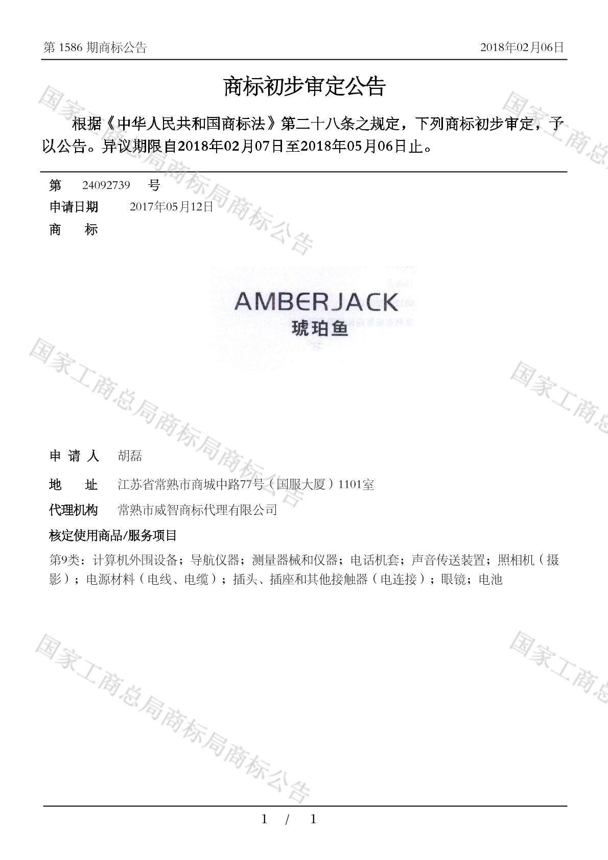 您当前位置:首页商标转让9类商标琥珀鱼 AMBERJACK