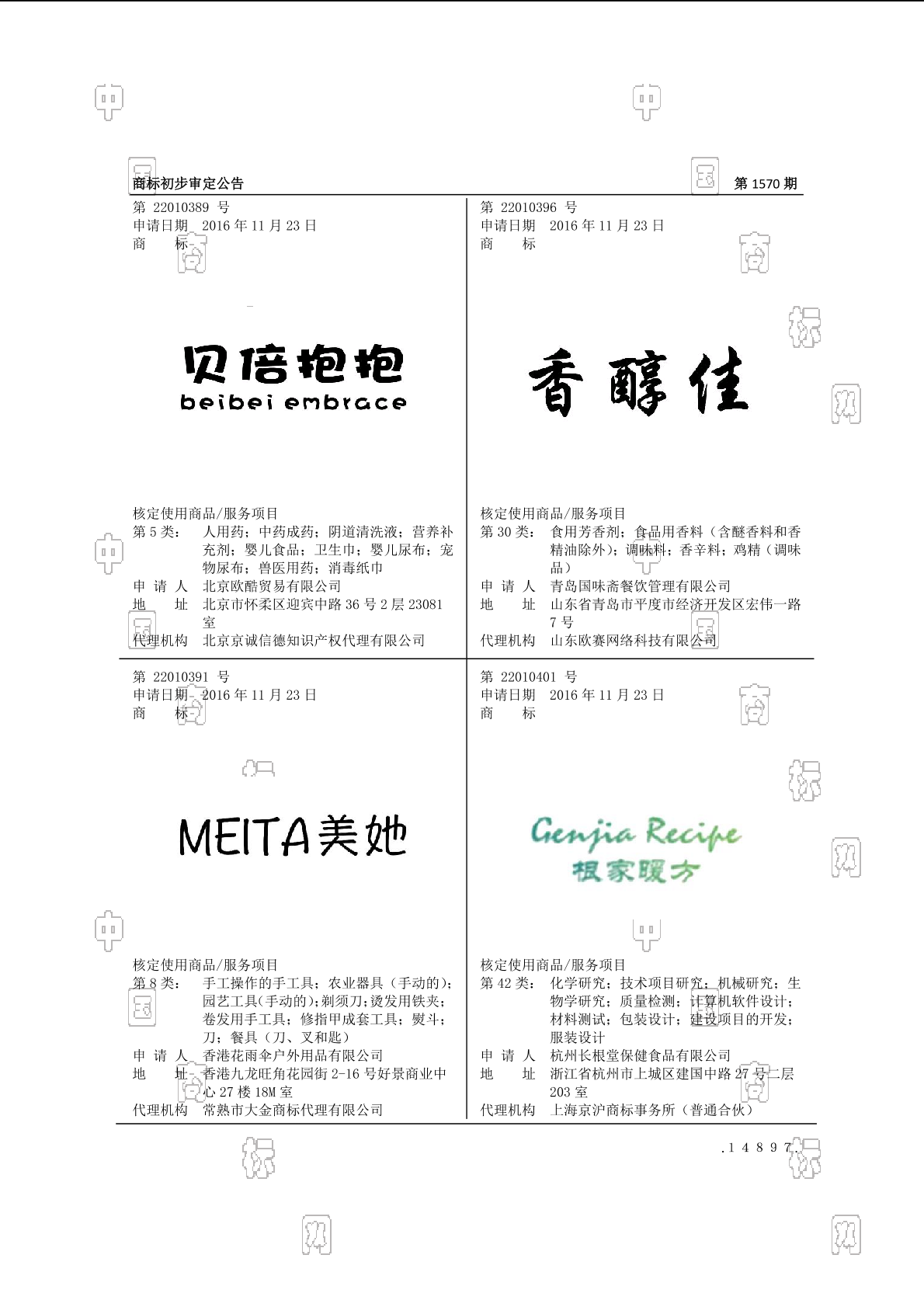 初审公告期号:1570