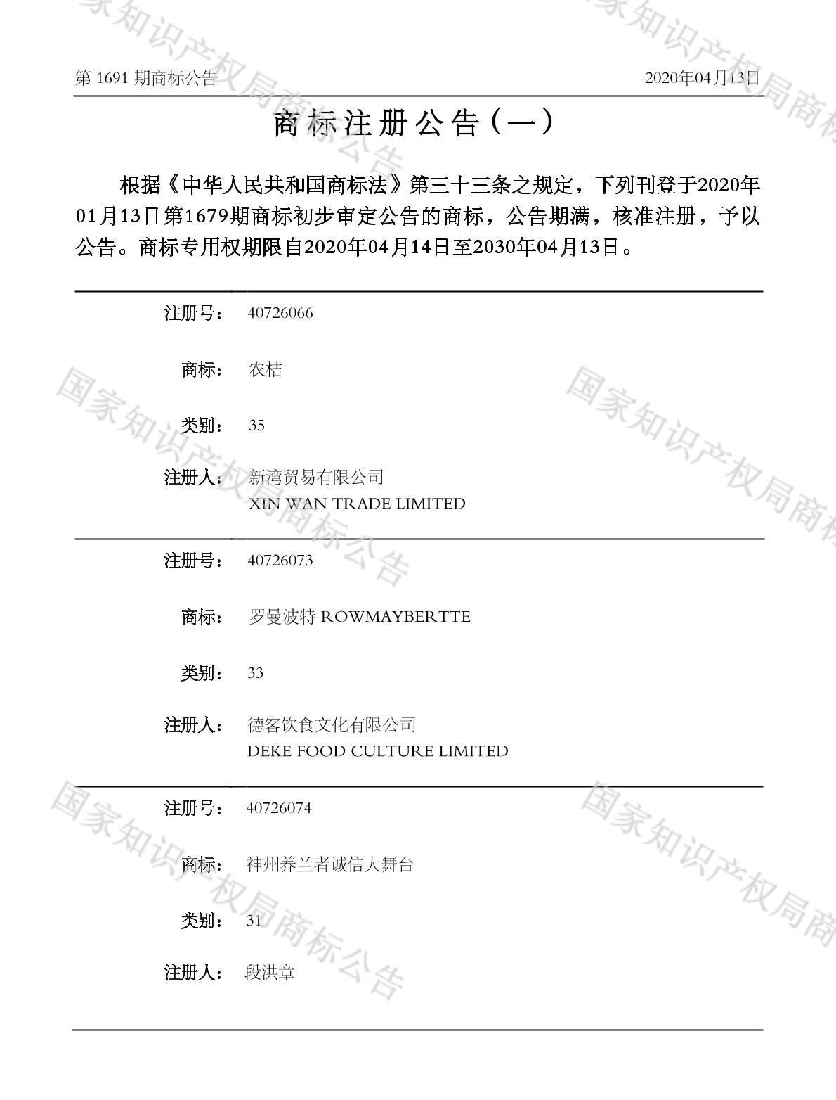 有效期限:2030-04-13 组合类型:中文注册号:40726073