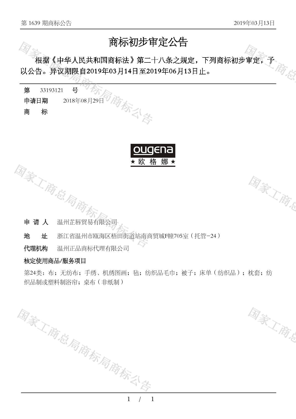 有效期限:2029-06-13 组合类型:中文注册号:33193121