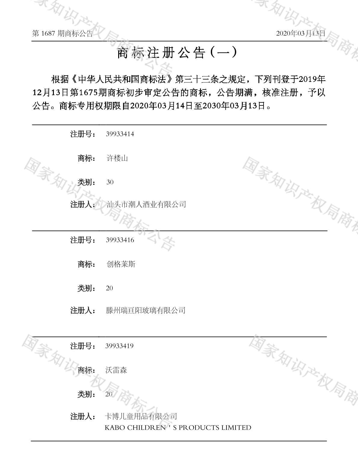 有效期限:2030-03-13 组合类型:中文注册号:39933419