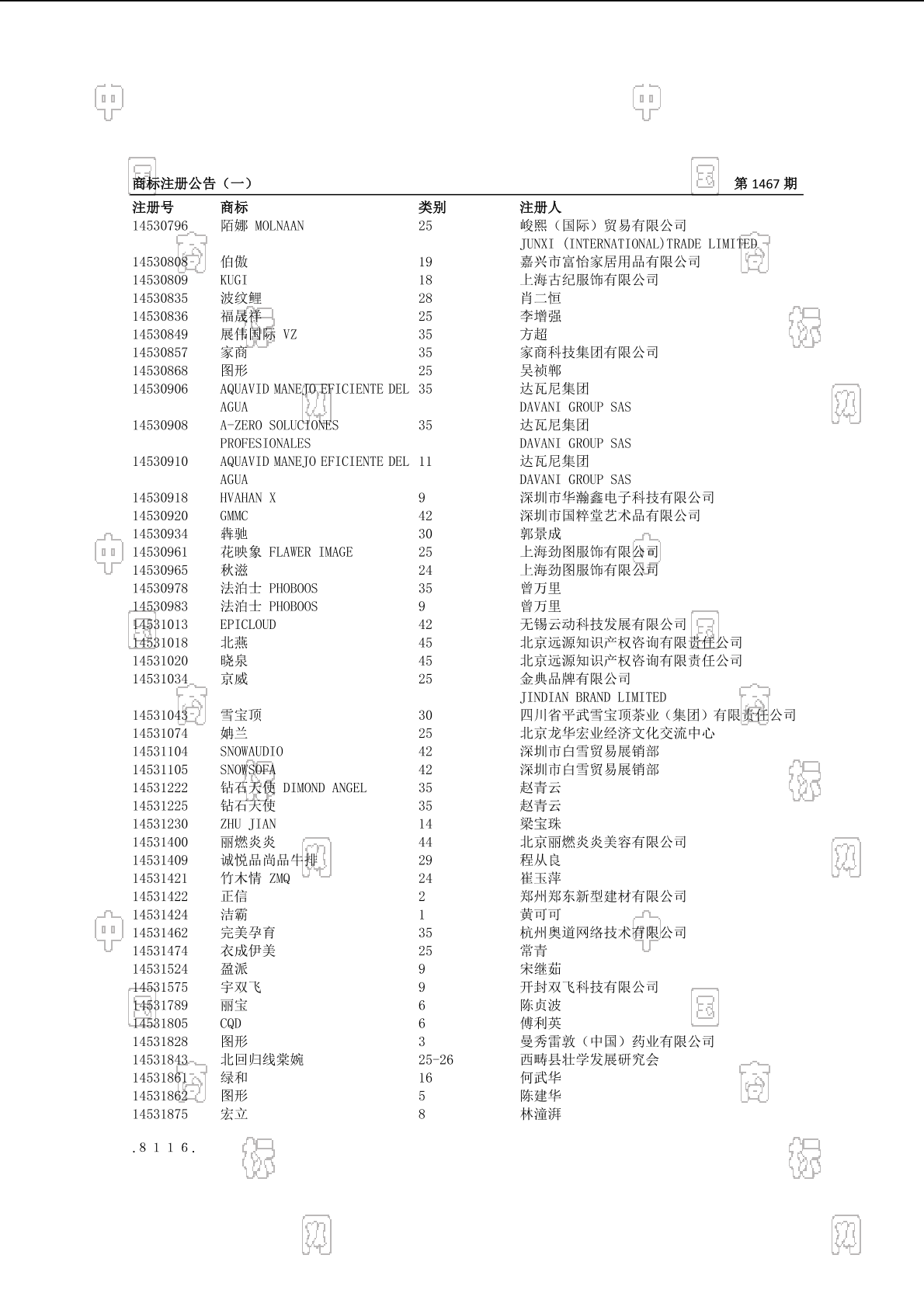 注册公告期号:1467